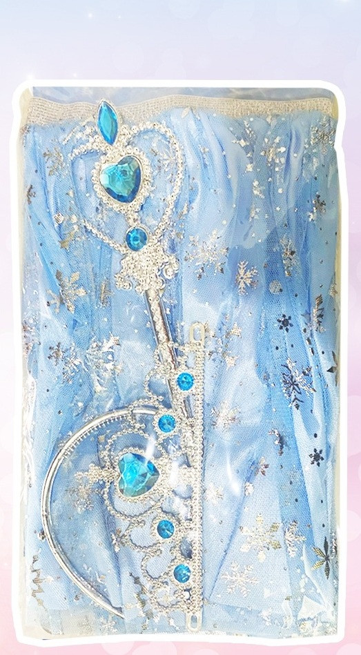 A Jégkirálynő jelmez készlet koronával és jogarral tökéletes választás farsangra, jelmezbálra vagy otthoni szerepjátékhoz. A szett úgy van összeállítva, hogy a gyermek könnyen átváltozhasson mesebeli jégkirálynővé, és szabadon engedhesse fantáziáját.