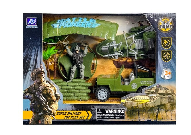 Ez a lenyűgöző játék készlet magában foglal egy részletesen kidolgozott ejtőernyős figurát, egy strapabíró jeepet és egy könnyű csónakot, amelyek mindegyike készen áll a legkeményebb küldetésekre is. A 34x24 cm-es dobozban található készlet ideális választás a kis felfedezők számára, akik szeretik a katonai tematikájú játékokat.