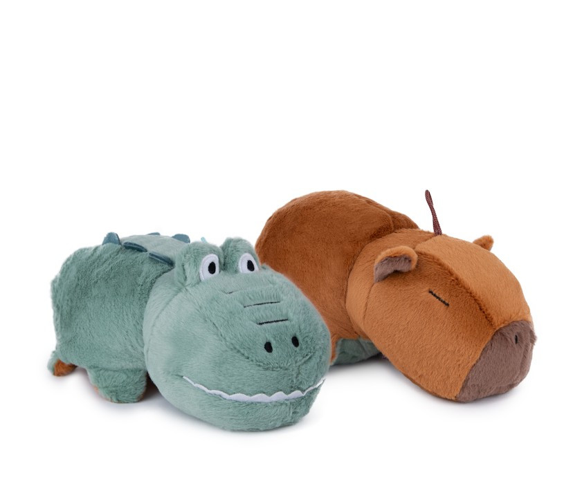 Ez a 23 cm-es kifordítható plüss állat igazi különlegesség: egyik oldalon egy alvó, bájos kapibara, a másikon egy mosolygós krokodil bújik meg. Egyetlen mozdulattal átfordítható, így a játék mindig új élményt nyújt.