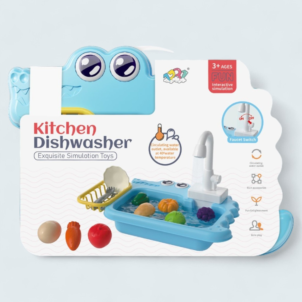 Ez a vidám és interaktív Kitchen Dishwasher játékszett tökéletes választás a kis konyhaművészek számára! A krokodil formájú mosogatóval és cirkuláló víz funkcióval rendelkező játék az igazi konyhai tevékenységek élményét nyújtja. A gyerekek megtanulhatják az alapvető konyhai eszközök és zöldségek használatát, miközben fejlesztik finommotoros készségeiket és képzelőerejüket.