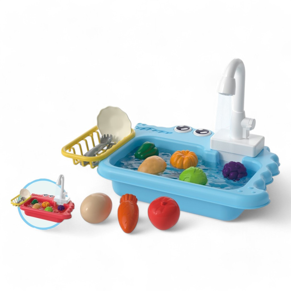 Ez a vidám és interaktív "Kitchen Dishwasher" játékszett tökéletes választás a kis konyhaművészek számára! A krokodil formájú mosogatóval és cirkuláló víz funkcióval rendelkező játék az igazi konyhai tevékenységek élményét nyújtja. A gyerekek megtanulhatják az alapvető konyhai eszközök és zöldségek használatát, miközben fejlesztik finommotoros készségeiket és képzelőerejüket.