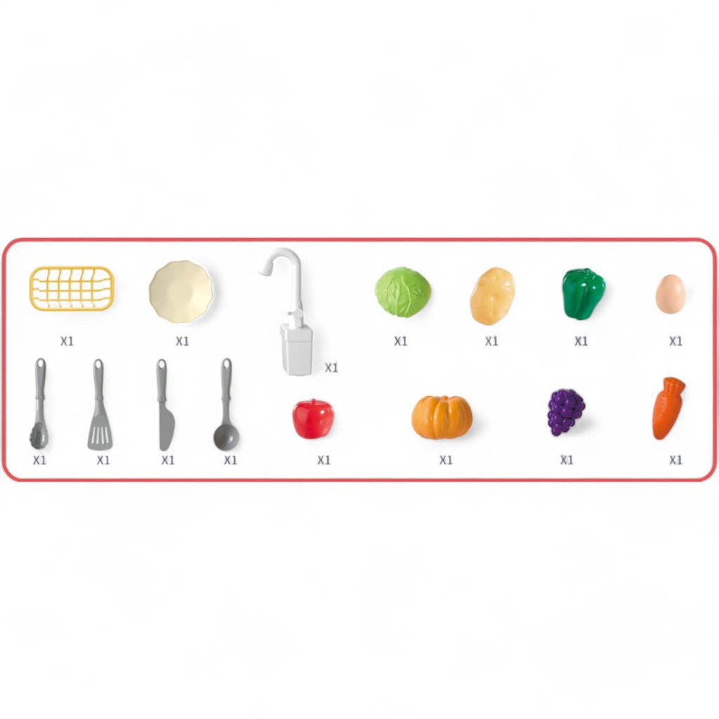 Ajánlott életkor: 3+ év Lepd meg gyermeked ezzel az egyedi játékkal, és hozd közelebb őt a házimunkák világához játékos formában!A termék mérete 30 x 22 cm dobozban.