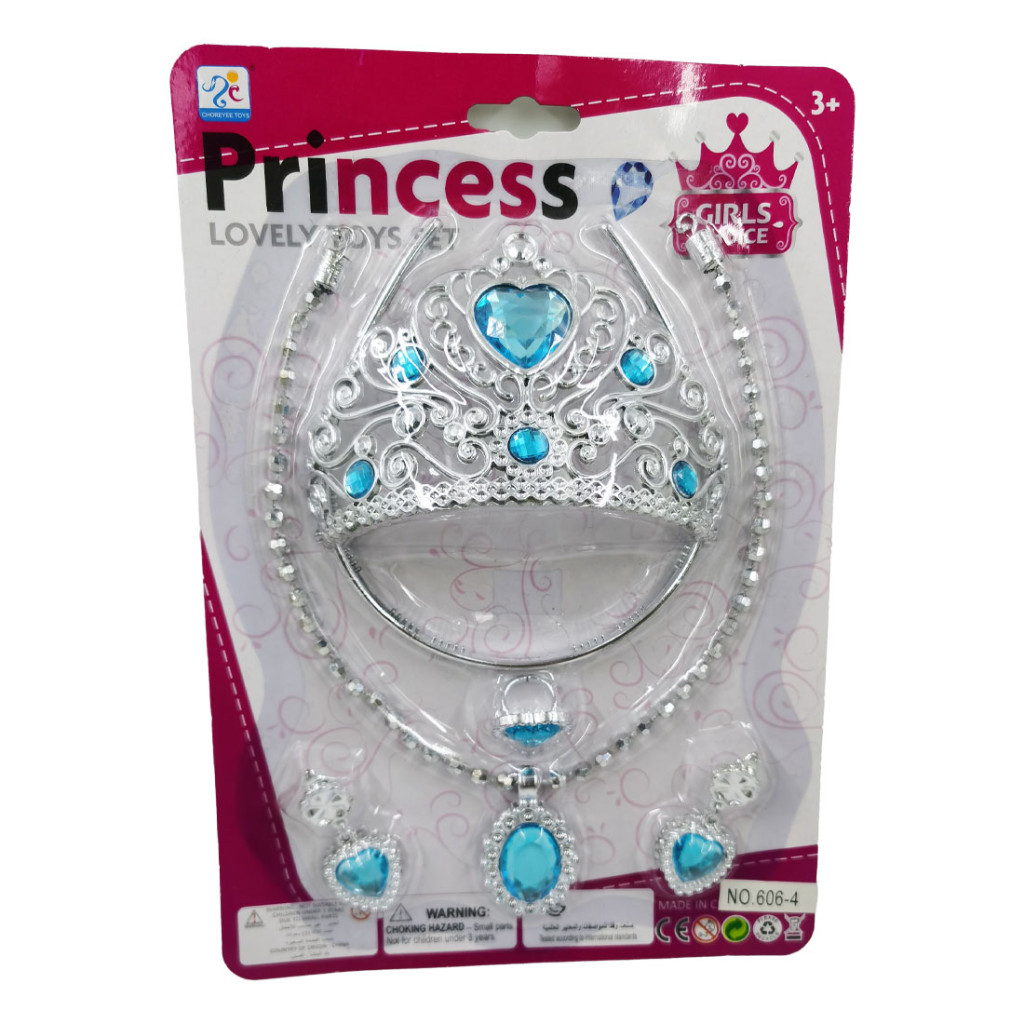 A korona ékszerszett egy bájos kiegészítő gyerekeknek, amely egy nyakláncból és egy pár fülbevalóból áll. A készlet egy 18x26 cm-es bemutatólapon érkezik, így átlátható, rendezett és ajándékozásra kész.
