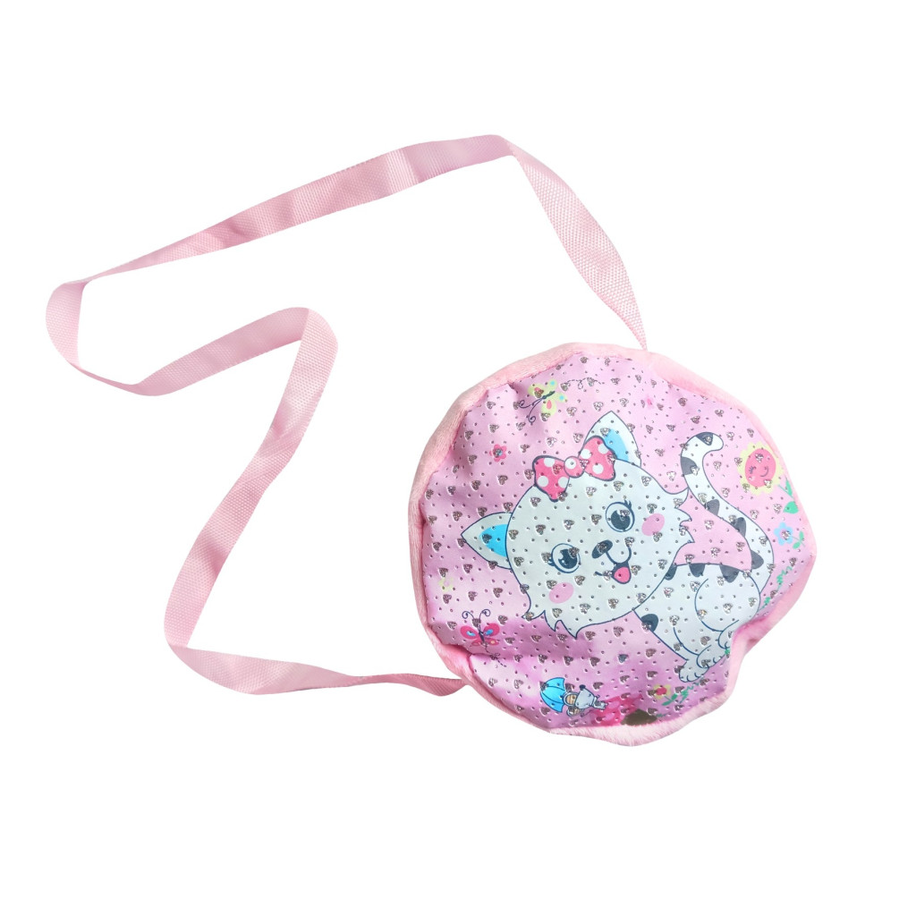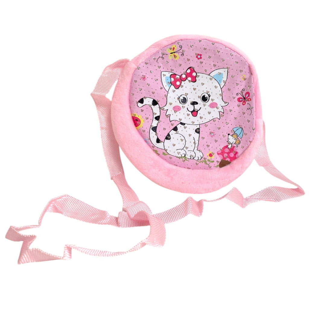 Aranyos cicás lányka válltáska 16x16 cm-es méretben, állítható pánttal. Ideális az első saját kis táskának, sétához, óvodába vagy vendégségbe.