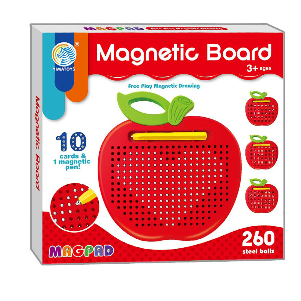 Engedd szabadjára a kreativitást ezzel az aranyos alma formájú mágneses rajztáblával! A mellékelt mágneses toll segítségével a gyerekek könnyedén felhúzhatják a fémgolyókat a tábla felszínére, így varázsolva elő mintákat, figurákat vagy betűket.