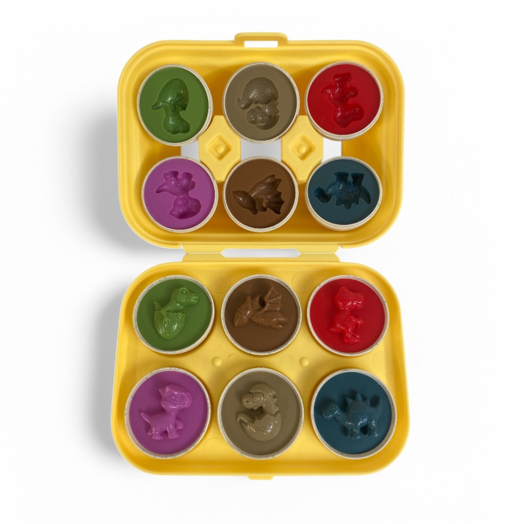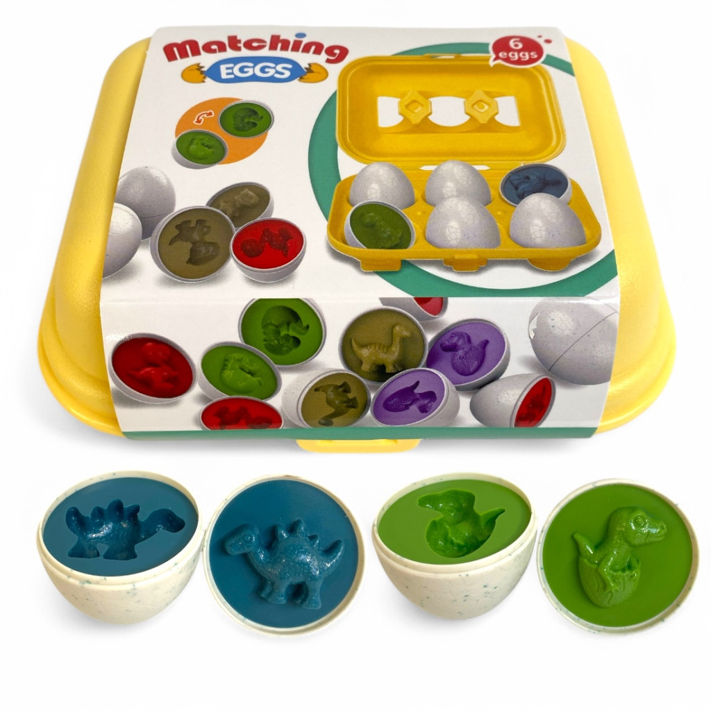 Ez a különleges, 12 részes dinoszauruszos tojáskészlet nemcsak szórakoztató, hanem fejlesztő játék is egyben. Minden tojásban egy kis dínófigura és annak párja rejtőzik – a gyermekeknek az alak és a szín alapján kell megtalálniuk a megfelelő párokat.