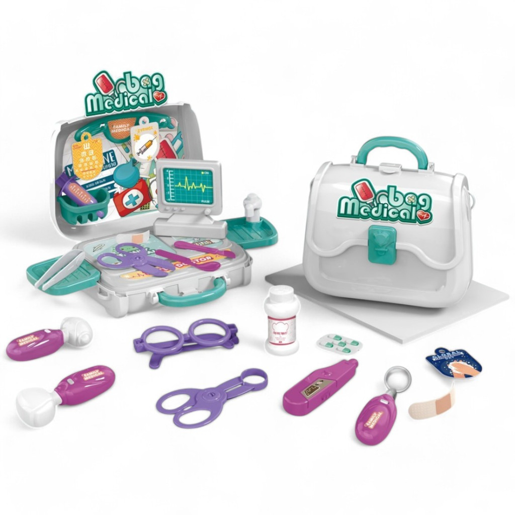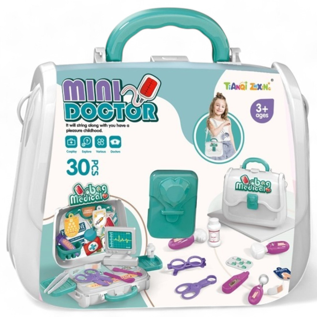 Hozd el az orvosi rendelő izgalmas világát gyermekeid játékidejébe ezzel a Mini Doctor Orvosi Készlettel, amely nemcsak szórakoztató, hanem oktató jellegű is! Ez a 30 darabos készlet tökéletes választás minden gyerek számára, aki szeret szerepjátékot játszani, és szívesen törődik "betegeivel", legyen szó plüssállatokról, családtagokról vagy barátokról.