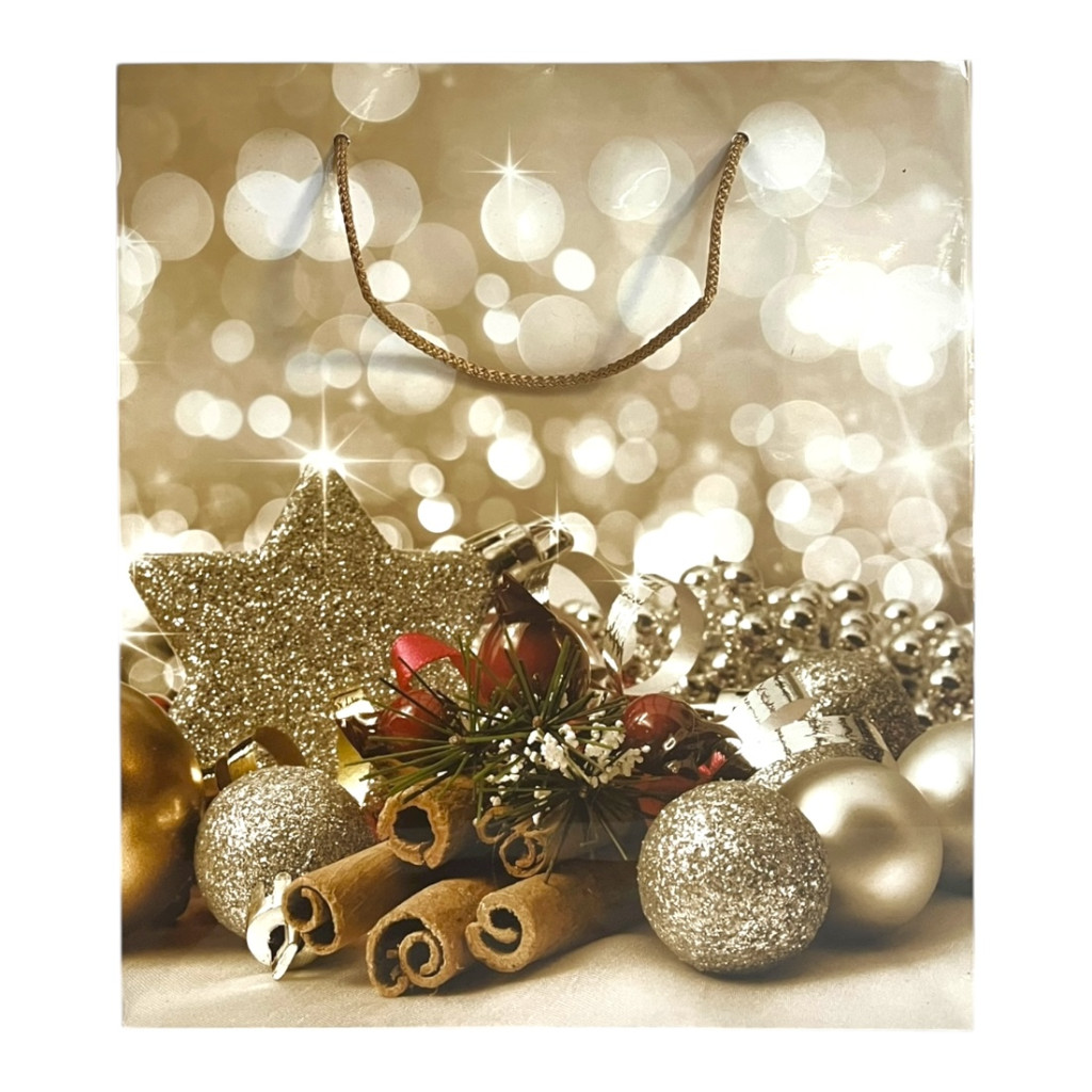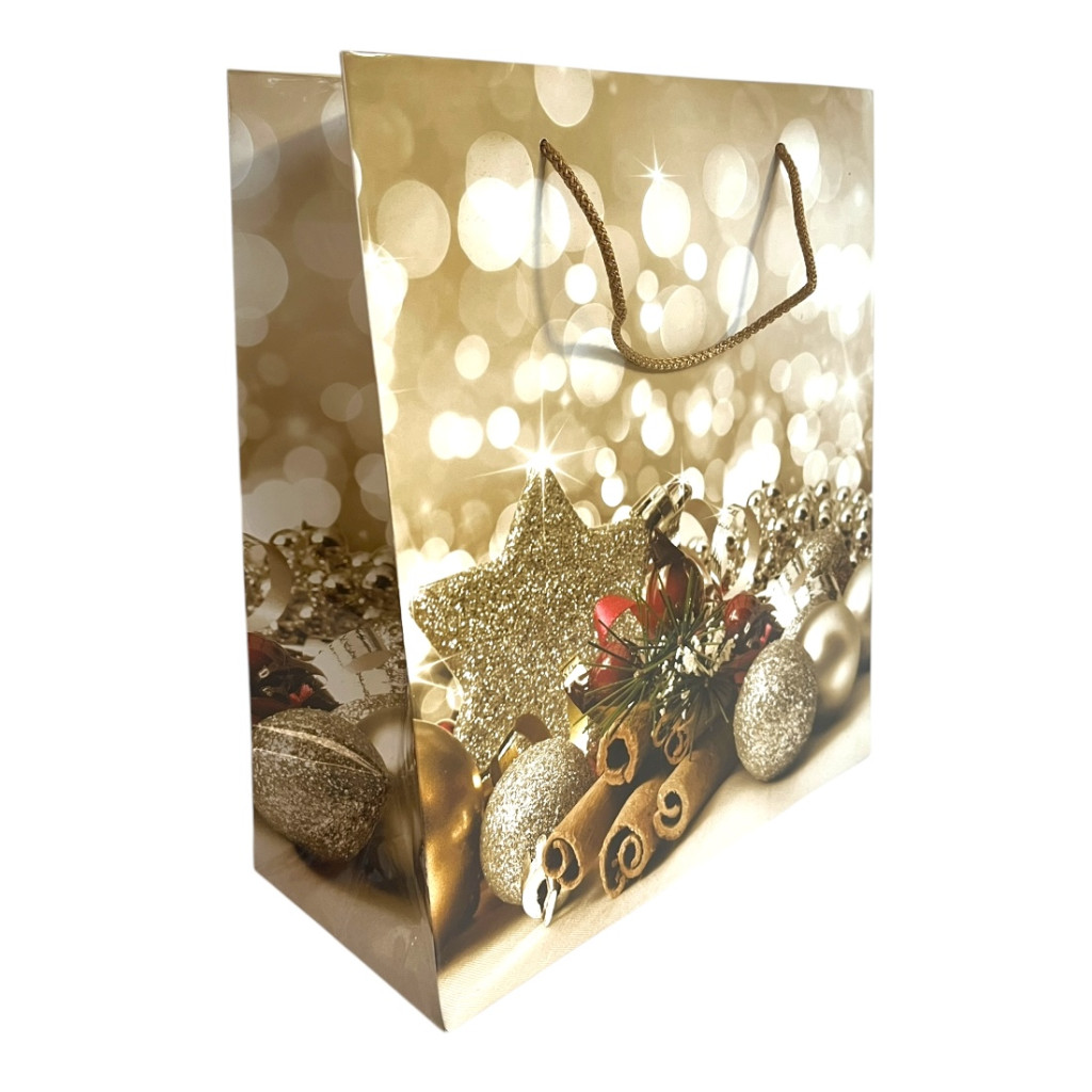 Papírtasak, fahéj, díszek, 26,5x30 cm