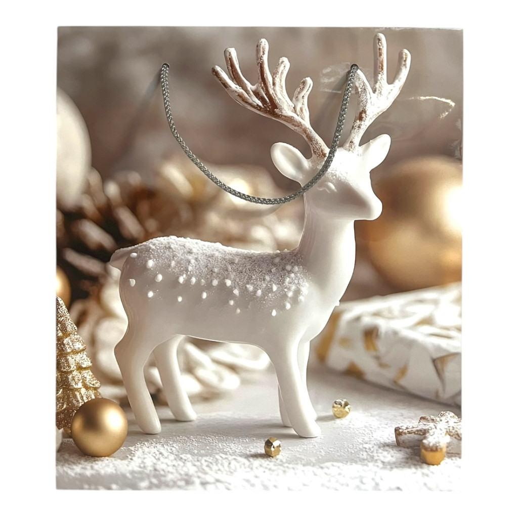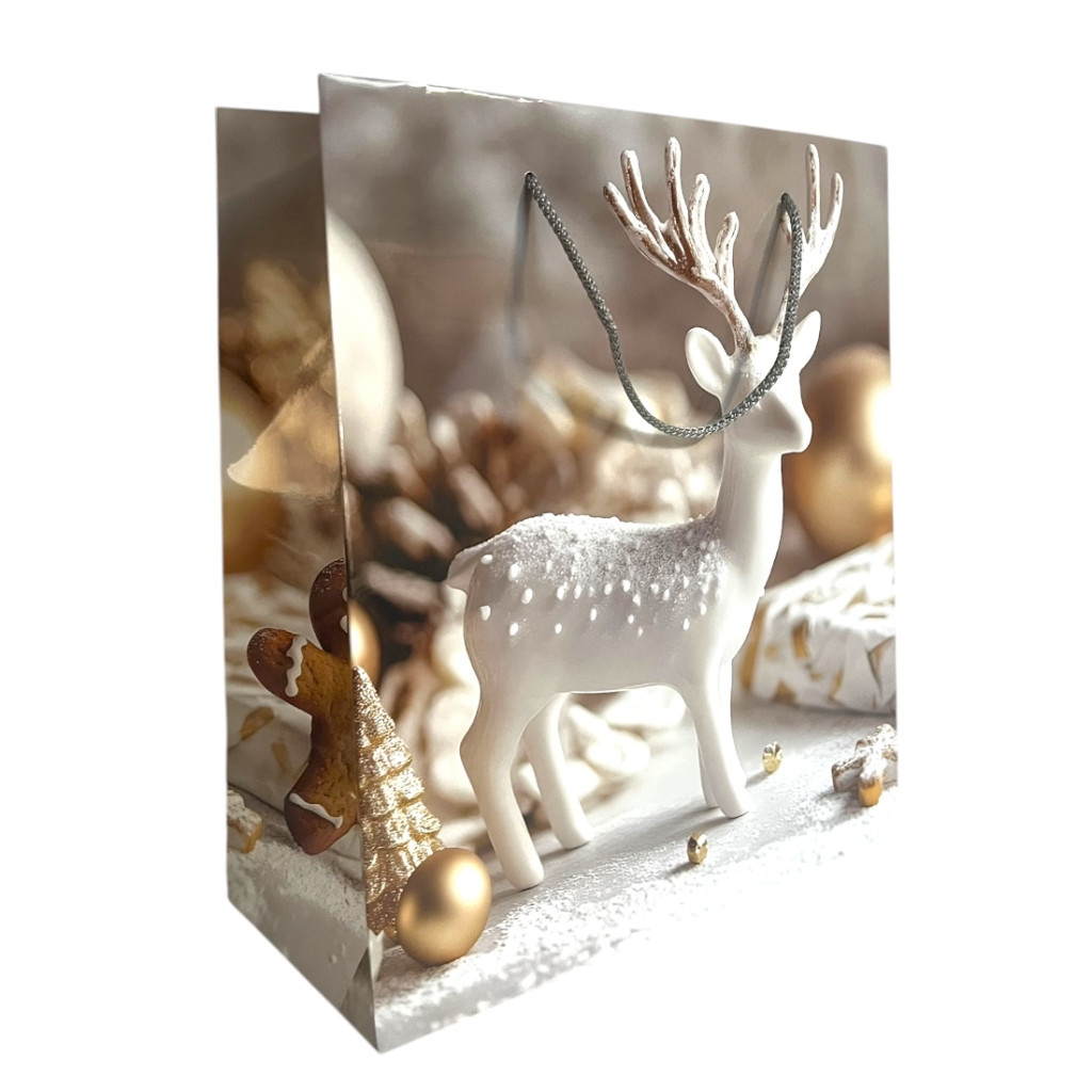 Papírtasak, fehér szarvas, 26,5x30 cm