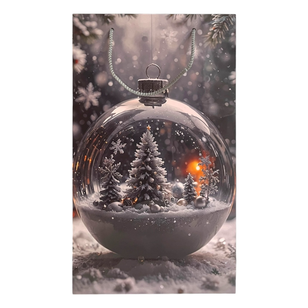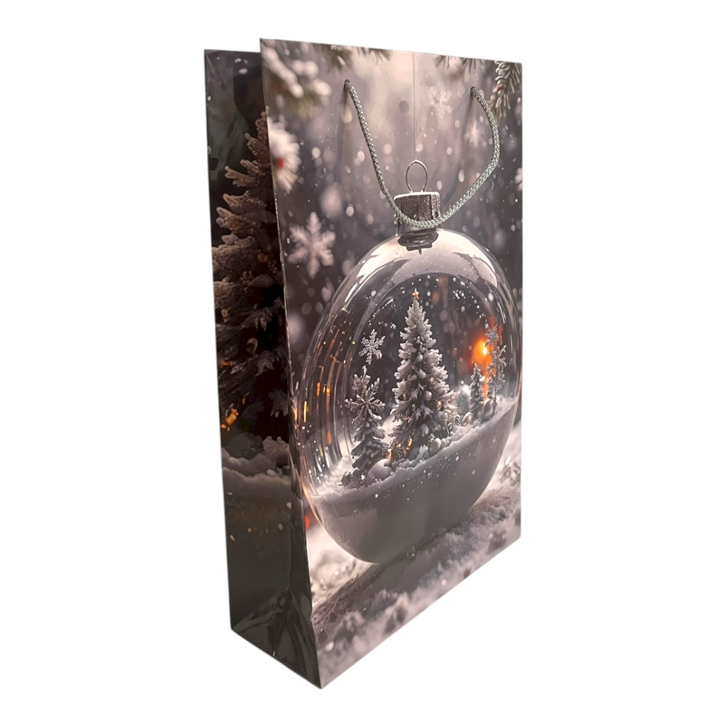 Papírtasak, gömb dísz karácsonyfával, 22x37 cm