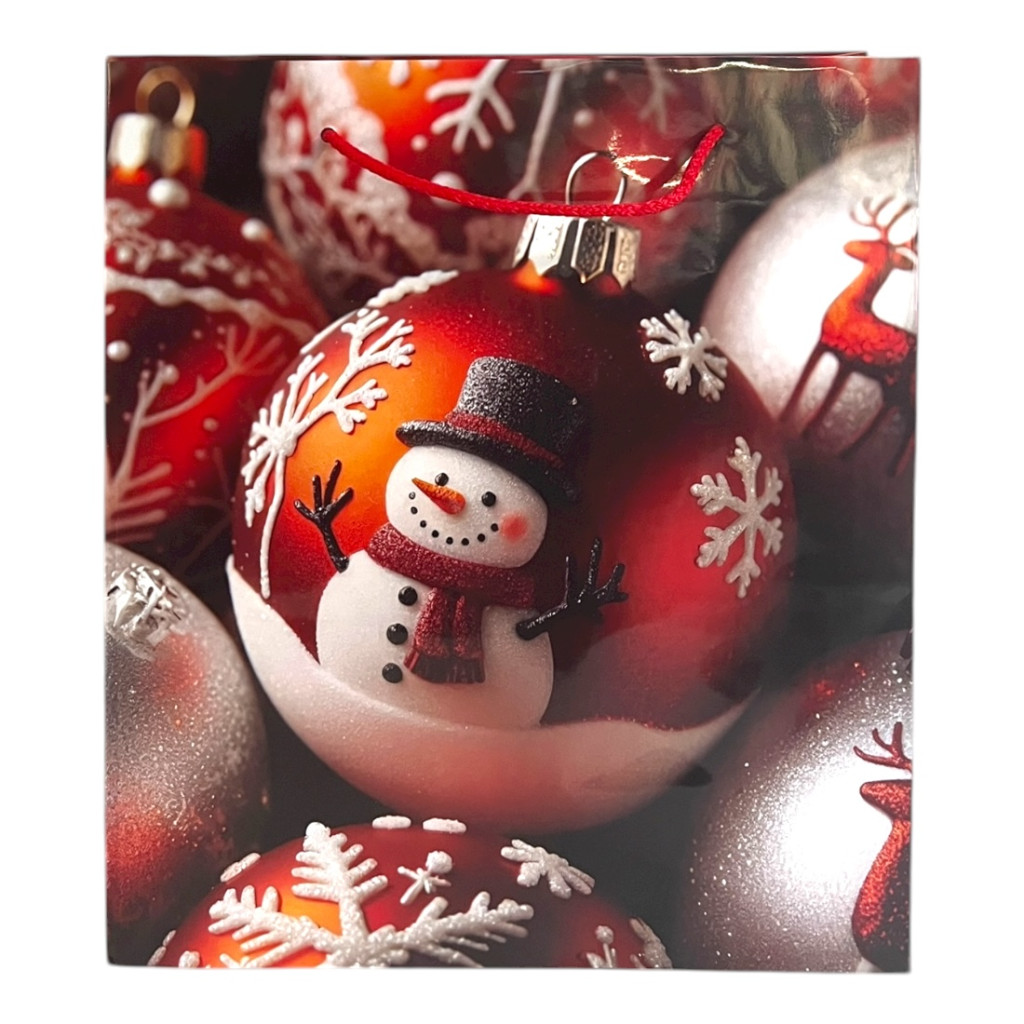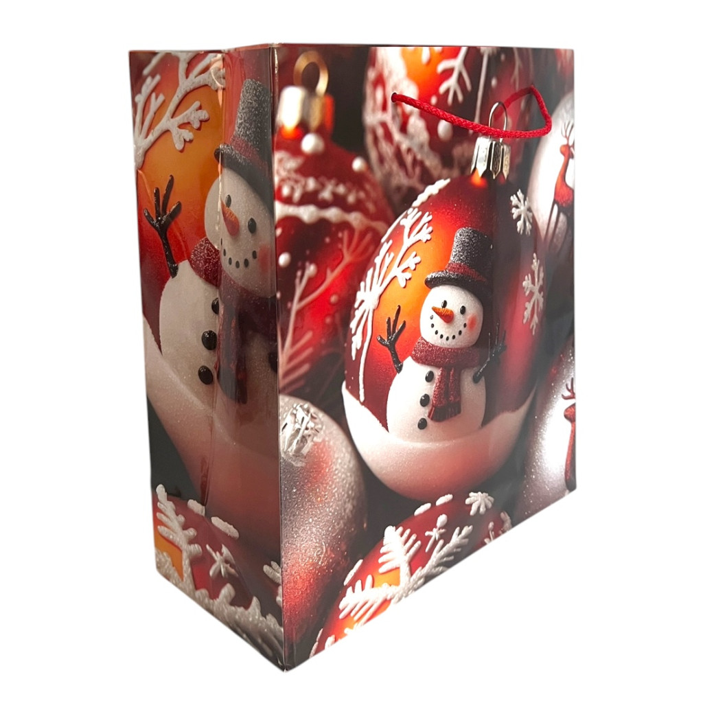Papírtasak, hóemberes, gömb dísz, 26,5x30 cm
