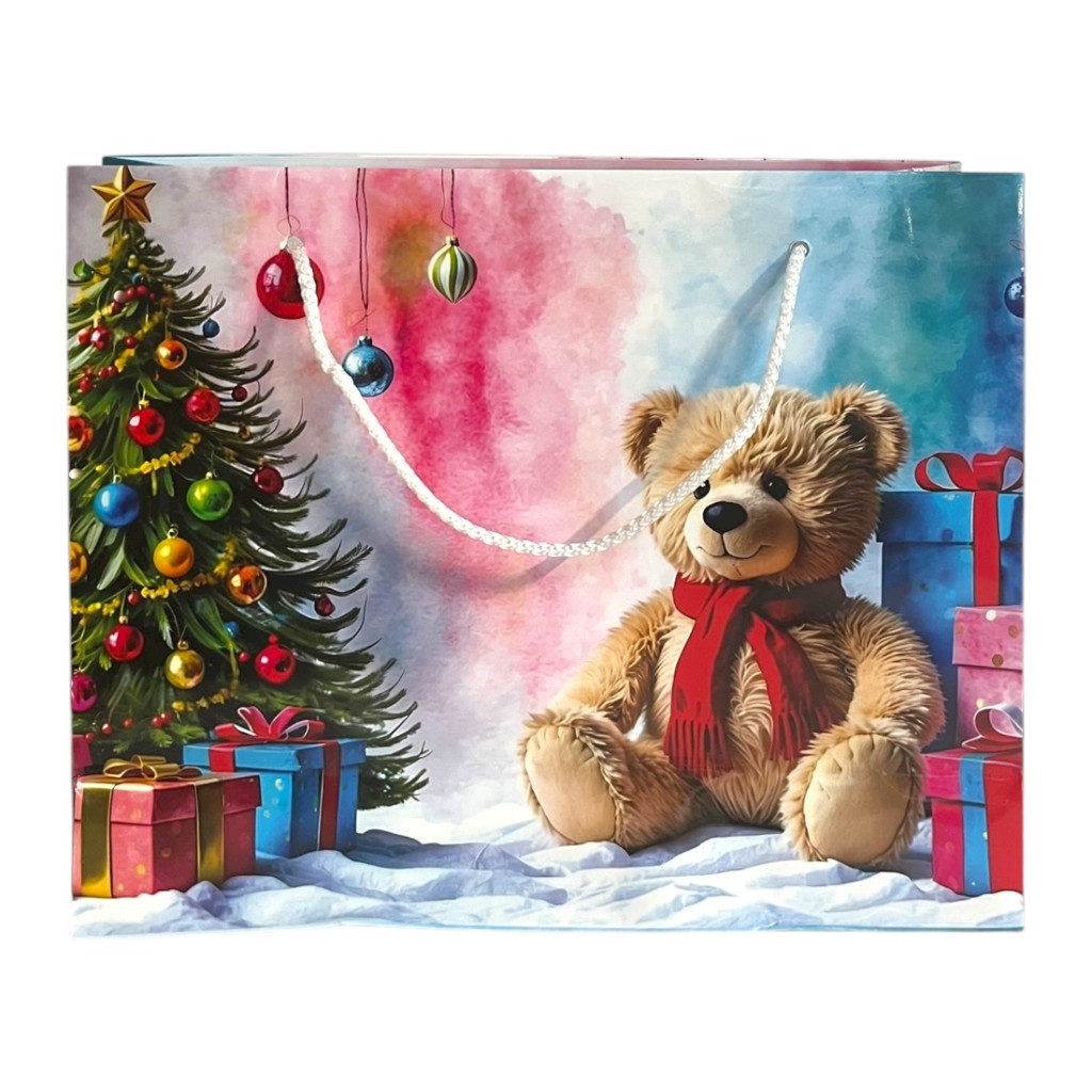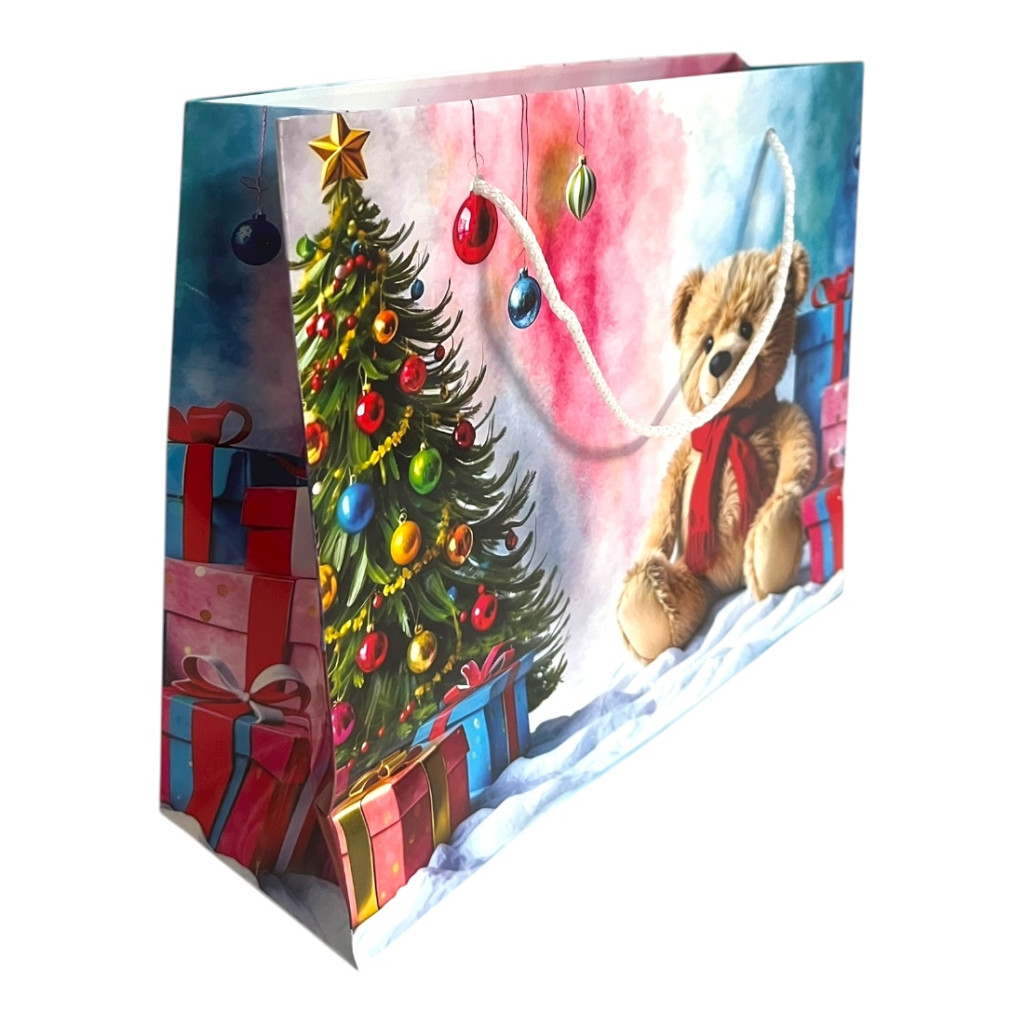 Papírtasak, maci, karácsonyfa, 25x20 cm
