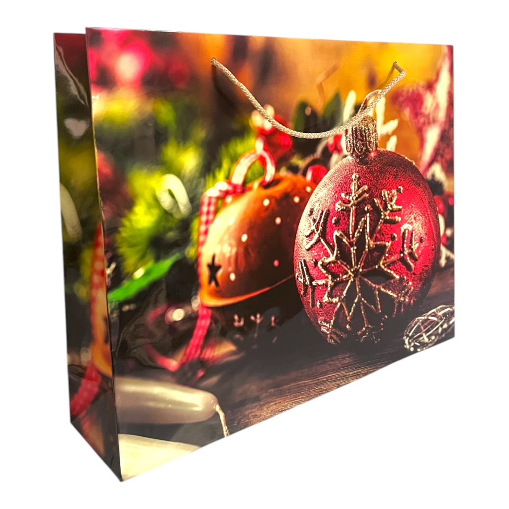 Papírtasak, piros, arany, 37x29 cm