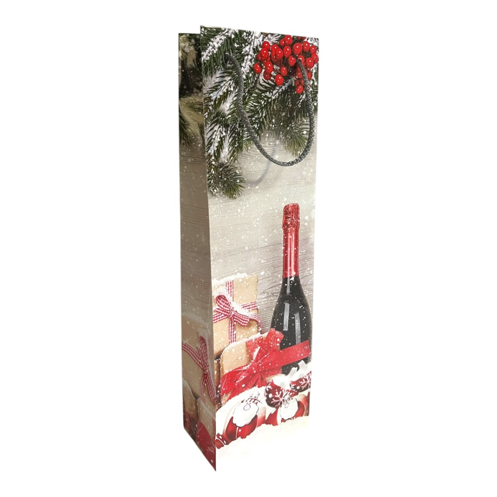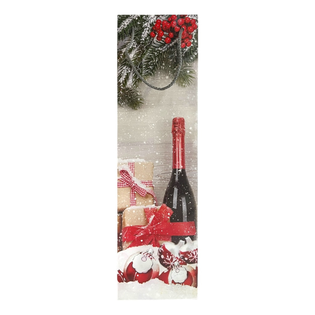Papírtasak, piros, fehér pezsgő, 11x36,5 cm