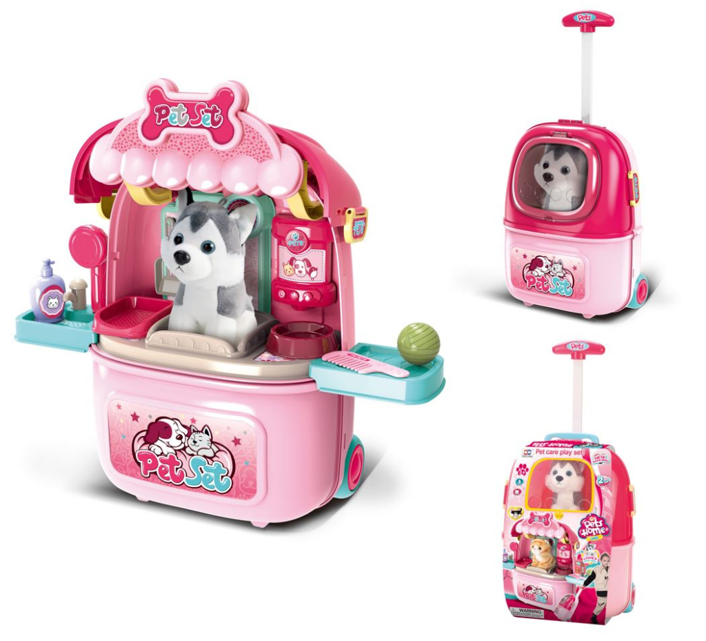 A játék szett egy praktikus kerekes táskává alakítható, így könnyedén szállítható bárhová. A szépségszalon különböző kiegészítőket tartalmaz, mint például hajkefét, ételtálat, samponos flakont és egyéb ápolási kellékeket, amelyek segítségével a gyerekek megismerhetik a kisállatok gondozásának alapjait. A szett ösztönzi a kreatív szerepjátékot, fejleszti a gyerekek kézügyességét és empátiáját.