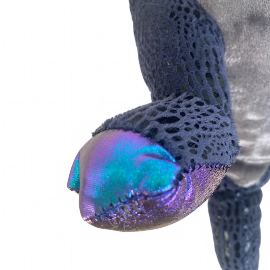 Egy dinoszaurusz, amely ölelésre termett! Ez a 27 cm-es plüss dínó lenyűgöző, futurisztikus megjelenésével és selymesen puha tapintásával azonnal elvarázsolja a gyerekeket és a dínórajongókat egyaránt. Csillogó, különleges textúrája és egyedi kialakítása igazi különlegessé teszi ezt az őskori barátot!