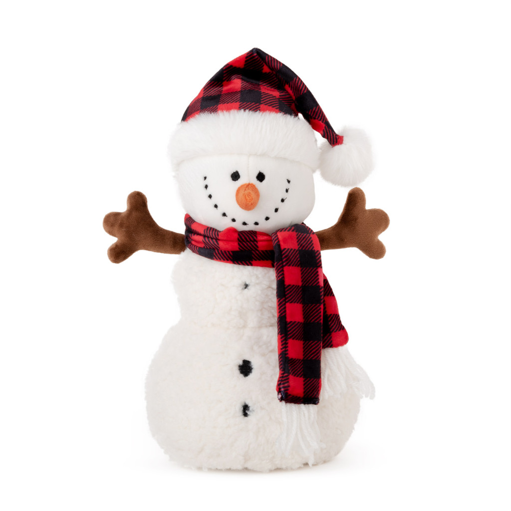 Ez a 26 cm-es plüss hóember piros-fekete kockás sapkában mosolyt csal mindenki arcára.