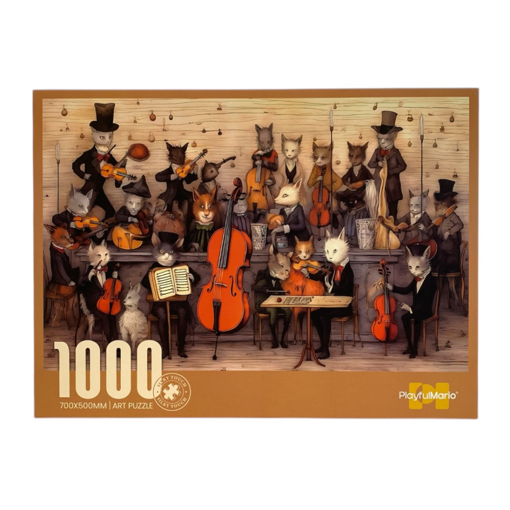 Ez a 1000 db-os puzzle tökéletes választás mindazok számára, akik szeretik a kihívásokat és a kreatív időtöltést. A "Állat Zenekar" témájú puzzle nemcsak szórakoztató, hanem szemet gyönyörködtető is. Az összeállított kép mérete 25x33 cm, így ideális méretű ahhoz, hogy bármelyik helyiség dísze legyen.