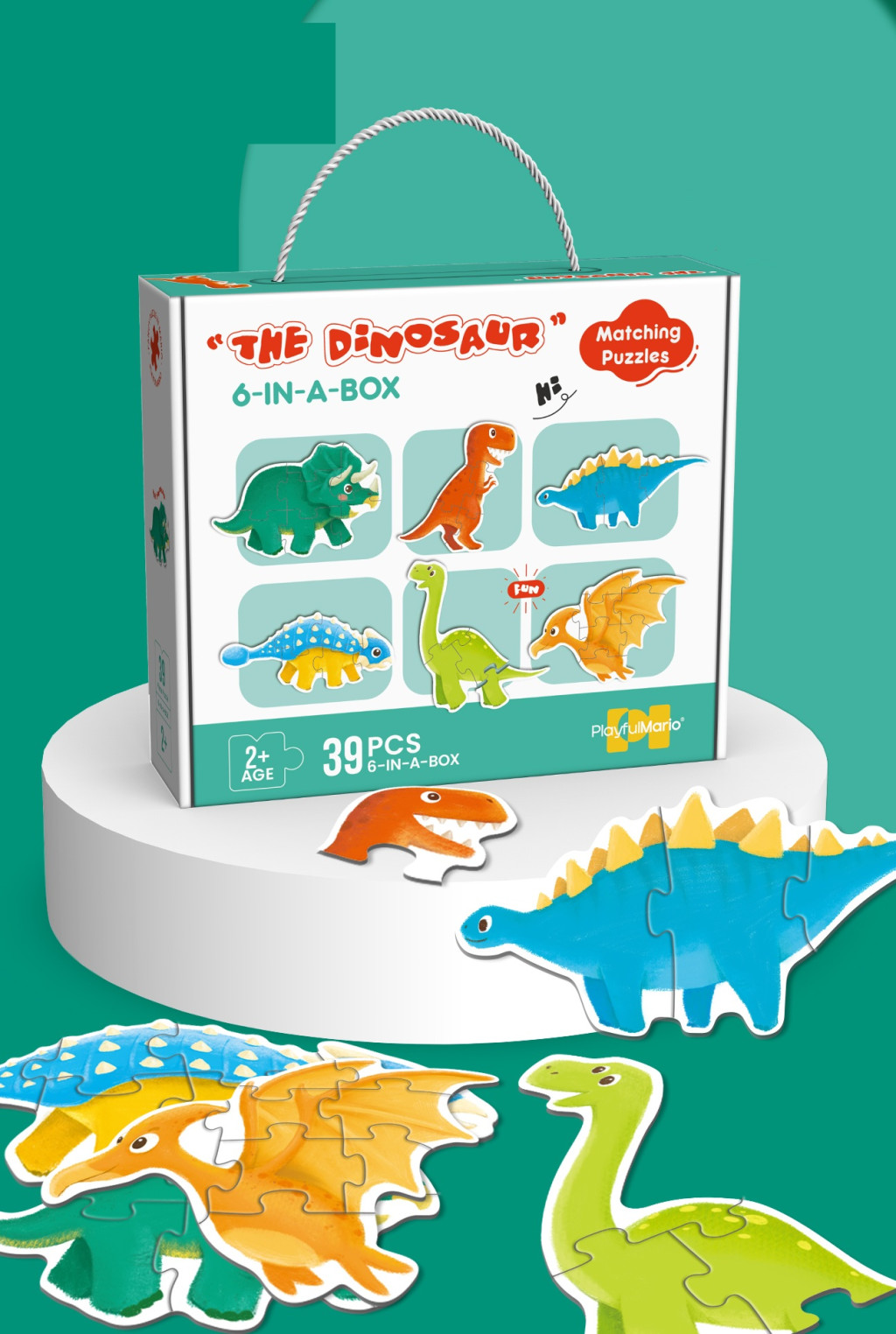 Ez a kiváló minőségű puzzle készlet 6 különböző dínó témájú képet tartalmaz, összesen 39 darabból. Minden puzzle mérete 25x21 cm, ami tökéletesen illik a kisebb kezekhez, és segít fejleszteni a gyerekek kézügyességét és problémamegoldó képességeit.