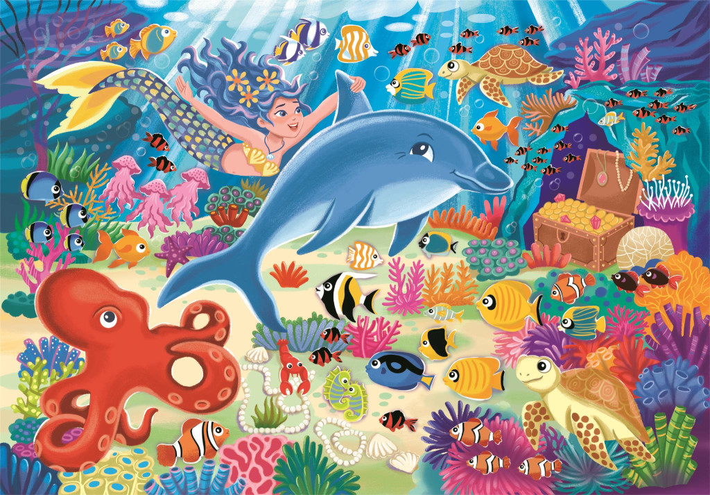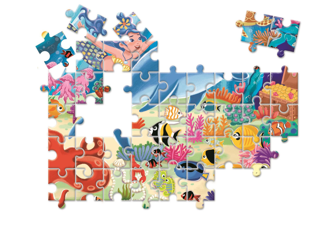A Clementoni Super Color – Tengeri állatok puzzle igazi kaland a tenger világában! A 30 darabos kirakó élénk színekkel, barátságos delfinnel, polippal és számtalan vízi élőlénnyel vezeti be a gyerekeket a kirakózás örömébe.