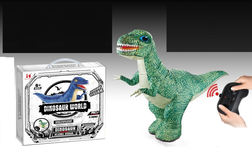 Távirányítós, 90 cm-es elektromos dínó légfújós funkcióval, látványos mozgással és hanghatásokkal, 28x28 cm-es dobozban.