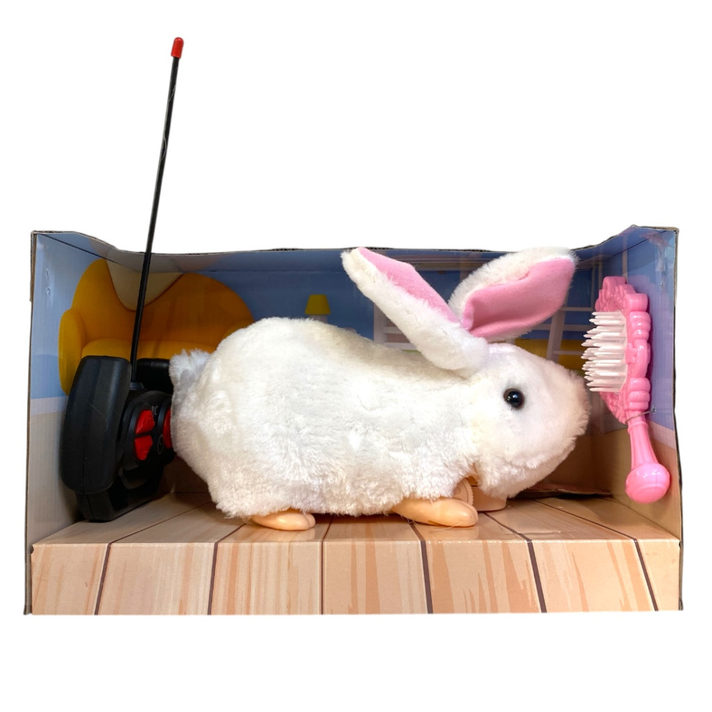 Puha, plüss R/C nyuszi 30x17 cm-es méretben, teljes funkcionalitású távirányítással, dobozos kivitelben, gyerekeknek.