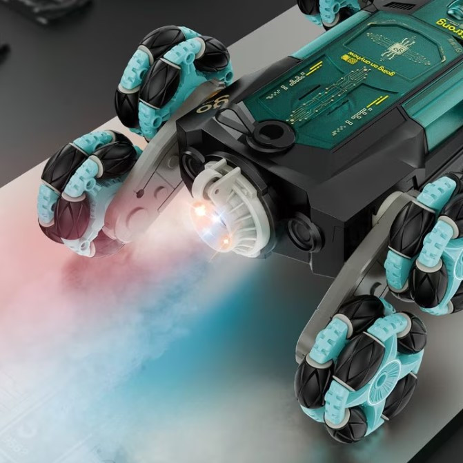 A teljes funkciós távirányítás lehetővé teszi az előre-hátra haladást, fordulást, pörgést és kaszkadőr mutatványokat. A beépített LED fények tovább fokozzák a látványt, különösen sötétebb környezetben. A modern, futurisztikus dizájn és a kétféle színváltozat még vonzóbbá teszi a játékot.