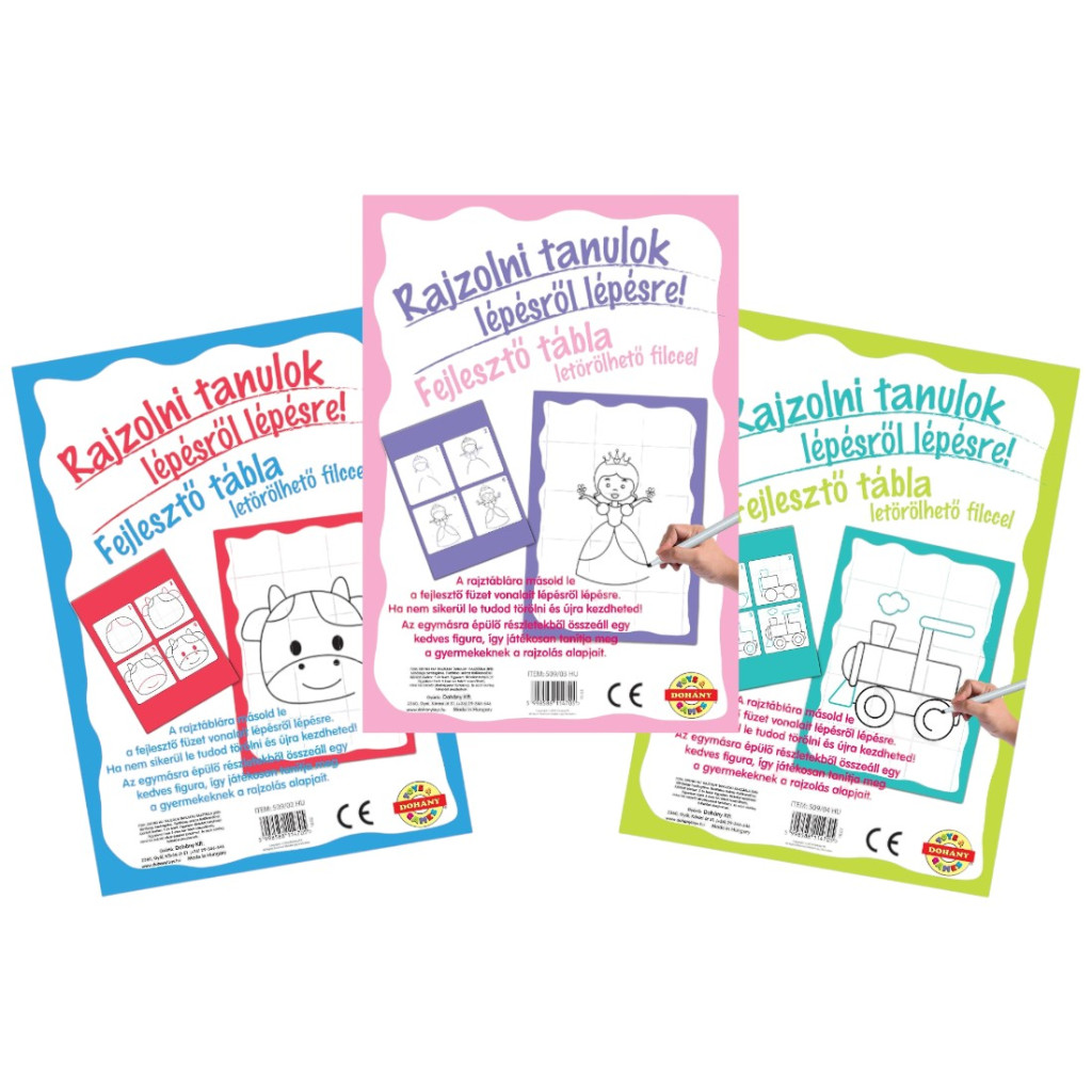 - Lépésről lépésre vezet – A mellékelt füzet segítségével a gyermek könnyedén elsajátíthatja az egyszerűbb alakzatokat, amelyeket végül egy kedves figurává formálhat.- Letörölhető és újrakezdhető – Ha elsőre nem sikerül, semmi gond! A mellékelt filc és szivacs segítségével a rajz könnyedén letörölhető, és újrakezdhető.- Fejleszti a finommotorikát és a kreativitást – Kiválóan segíti a kéz koordinációját és a precíz vonalvezetést, amely alapvető a későbbi íráskészség kialakulásában.- Változatos tematikák – Négy különböző változatban elérhető, így minden gyermek megtalálhatja a kedvencét: vonatos, bocis, hercegnős és egyéb aranyos figurák rajzolásával.