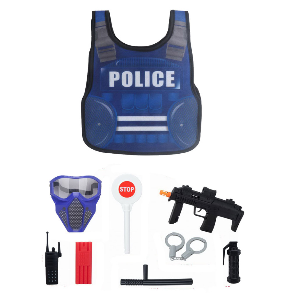 Ez a rendőr készlet tökéletes választás minden kis hős számára, aki szereti az akciót és a szerepjátékot. A csomag tartalmaz egy stílusos mellényt, amely kényelmes viseletet biztosít, valamint egy maszkot, ami megvédi a személyazonosságodat, miközben a rendet őrzöd. A tárcsa és a további kiegészítők segítenek valósághűbbé tenni a játékot, így igazi élményben lehet részed.