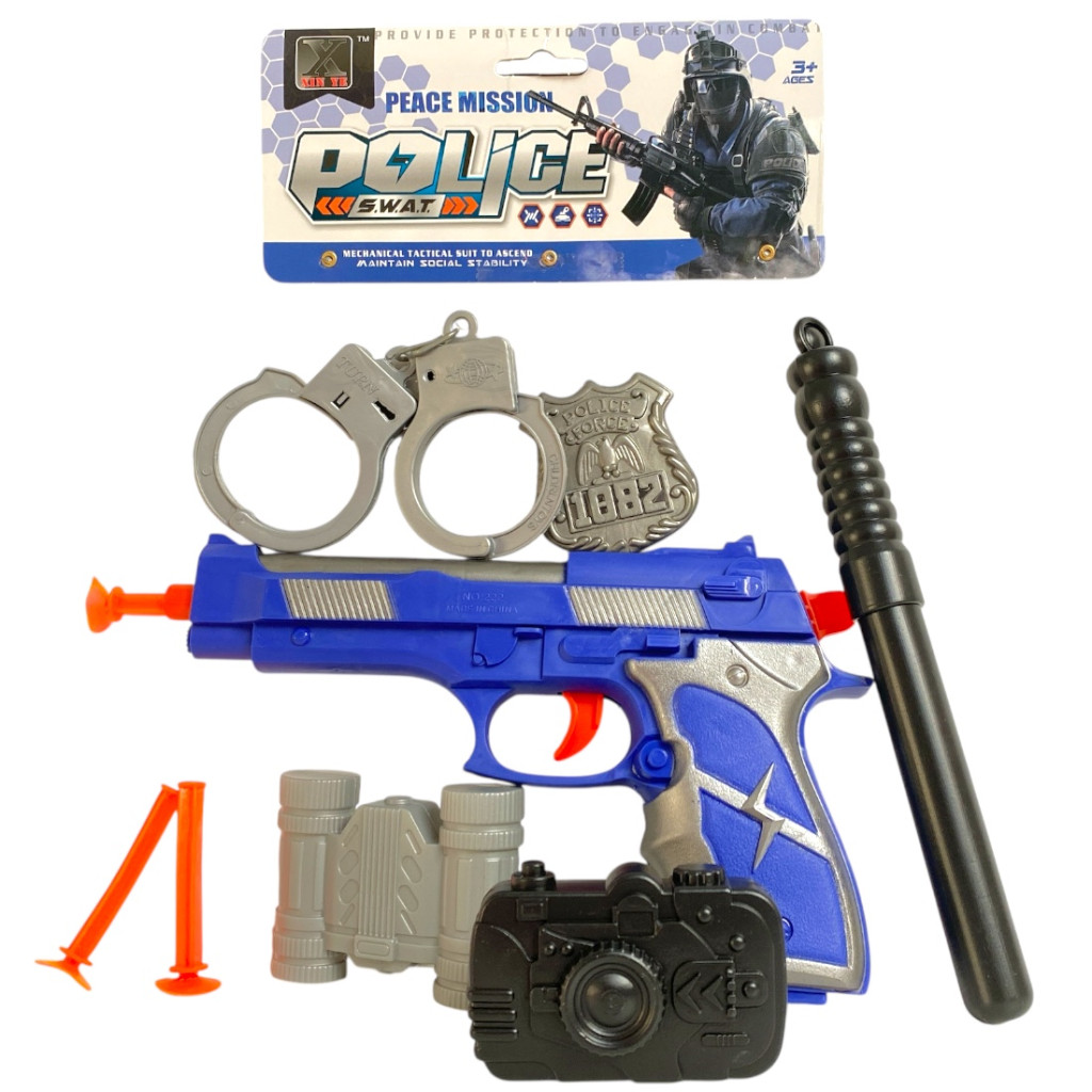 Ez a rendőr játék készlet mindent tartalmaz, amire egy izgalmas szerepjátékhoz szükség lehet. A szettben egy játékpisztoly, tapadókorongos lövedékek és egy műanyag bilincs kapott helyet, így a gyerekek könnyen eljátszhatják a rendőrös jeleneteket otthon vagy a barátokkal.
