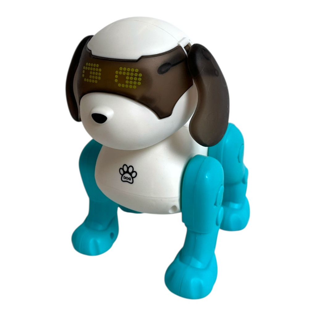 Interaktív elemes robot kutya hang- és fényhatásokkal. Szórakoztató társ gyerekeknek, amely mozgással, világítással és vidám hangokkal kelti életre a játékidőt.