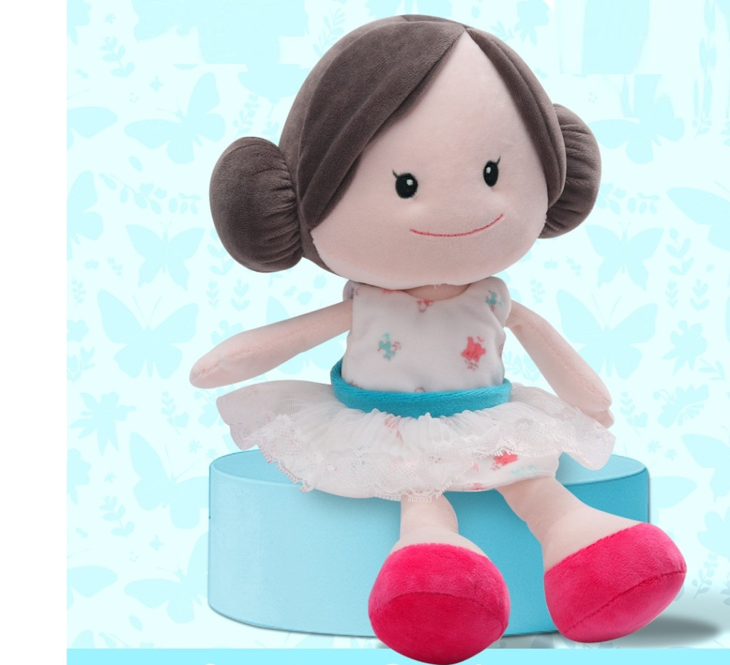 Puha plüss baba fehér ruhában, rózsaszín cipőben – kedves, ölelgetni való társ minden kislánynak! Kiváló minőségű anyagból készült, biztonságos és kellemes tapintású játék, amely garantáltan mosolyt csal az arcokra.