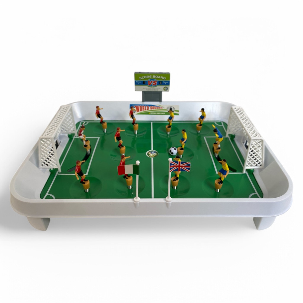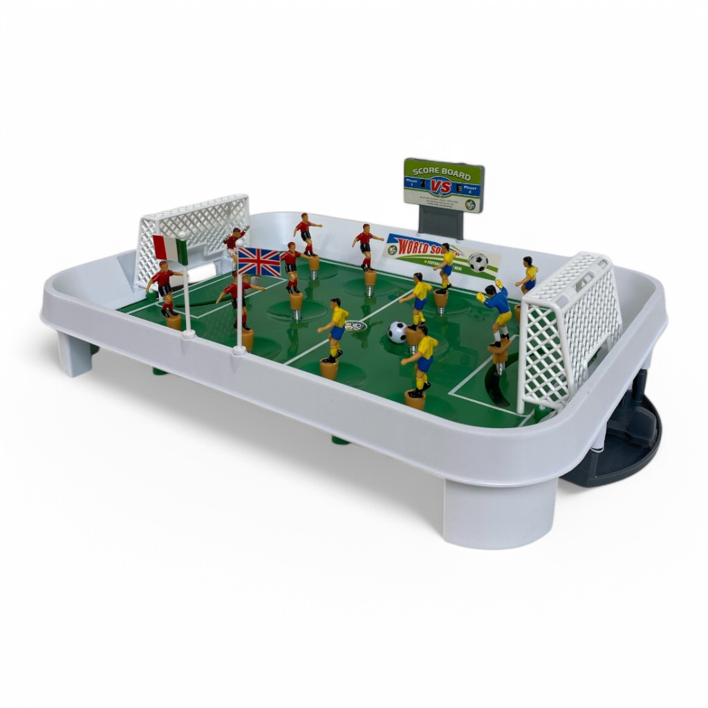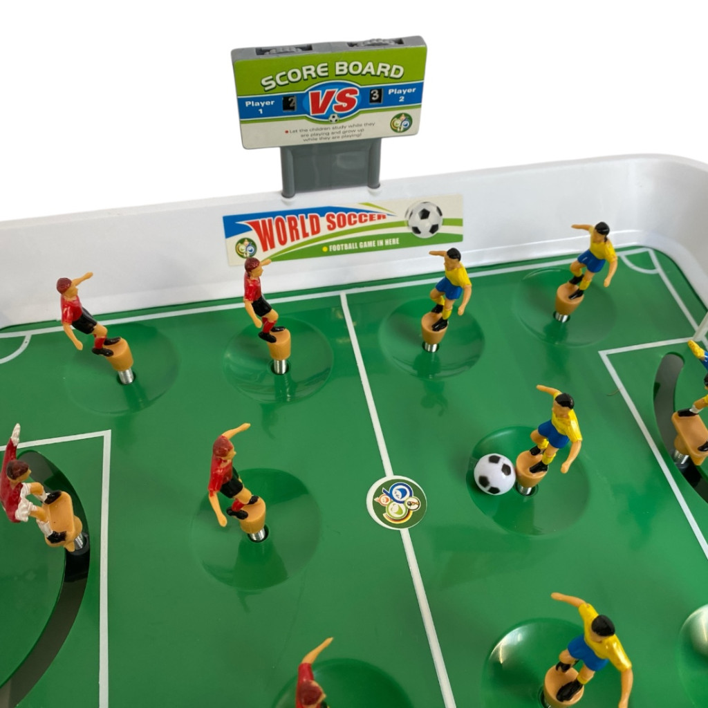 Mitől különleges?Ez nem egy sima mini focipálya – a játékosfigurák rugós szerkezettel vannak felszerelve, így elég csak lenyomni és elengedni őket, hogy erőteljesen „rúgják” a labdát. A gyors reakcióidő és ügyes célzás a győzelem kulcsa!