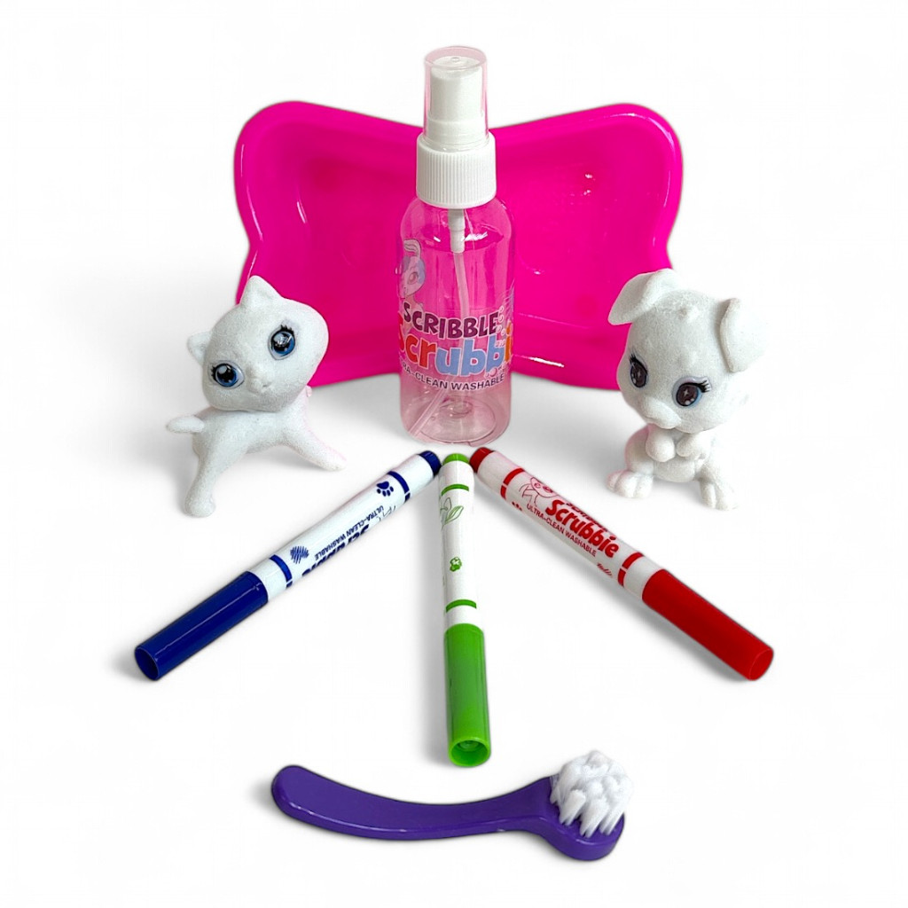 Engedd szabadjára a kreativitásodat a Scribble Scrubbie DIY Your Own Pet készlettel, ahol saját kisállatokat tervezhetsz! Ez a szórakoztató és interaktív játék lehetővé teszi, hogy a gyerekek egyedi mintákat rajzoljanak a mellékelt puha kisállatokra a színes filctollakkal. Miután elkészítették a saját dizájnjukat, a gyerekek könnyedén lemoshatják azt a mellékelt kefe és vízpermetező segítségével, hogy újrakezdhessék az alkotást!