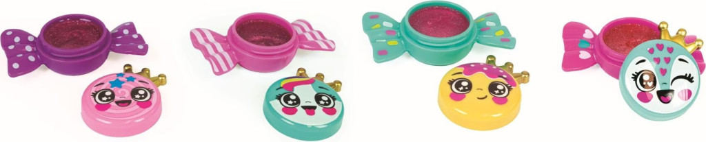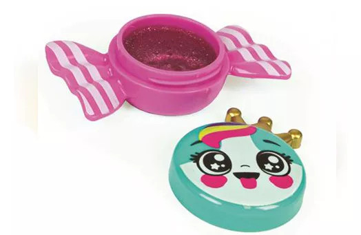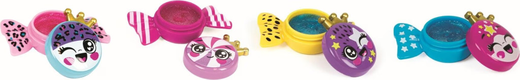 Cukorka formájú szájfény smink készlet 8 cm-es méretben, 24 darabos display kiszerelésben, ajándéknak, gyűjtésre vagy impulzus vásárlásra.