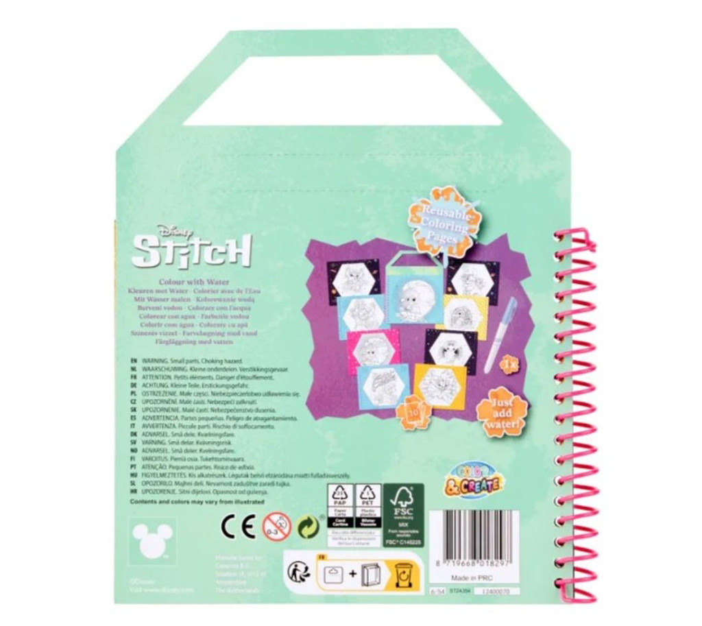 A szett tartalma:- Újrahasználható vízzel színezhető könyv Stitch motívumokkal- Újratölthető víztoll- Vidám jelenetek Lilo és Stitch világából