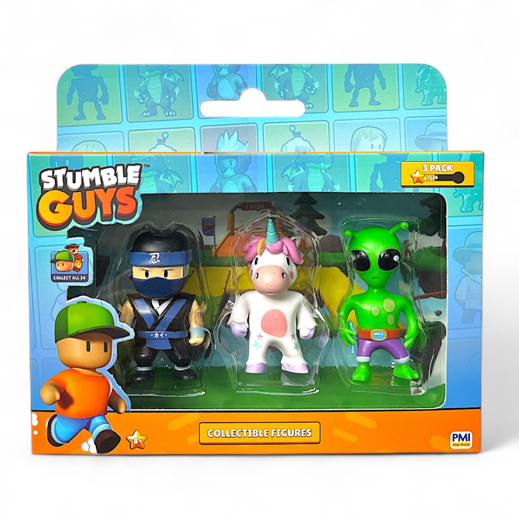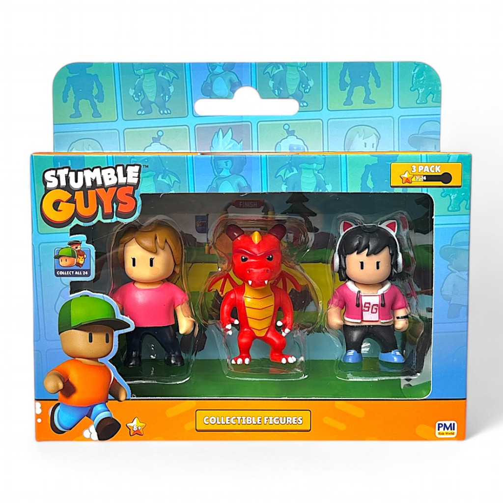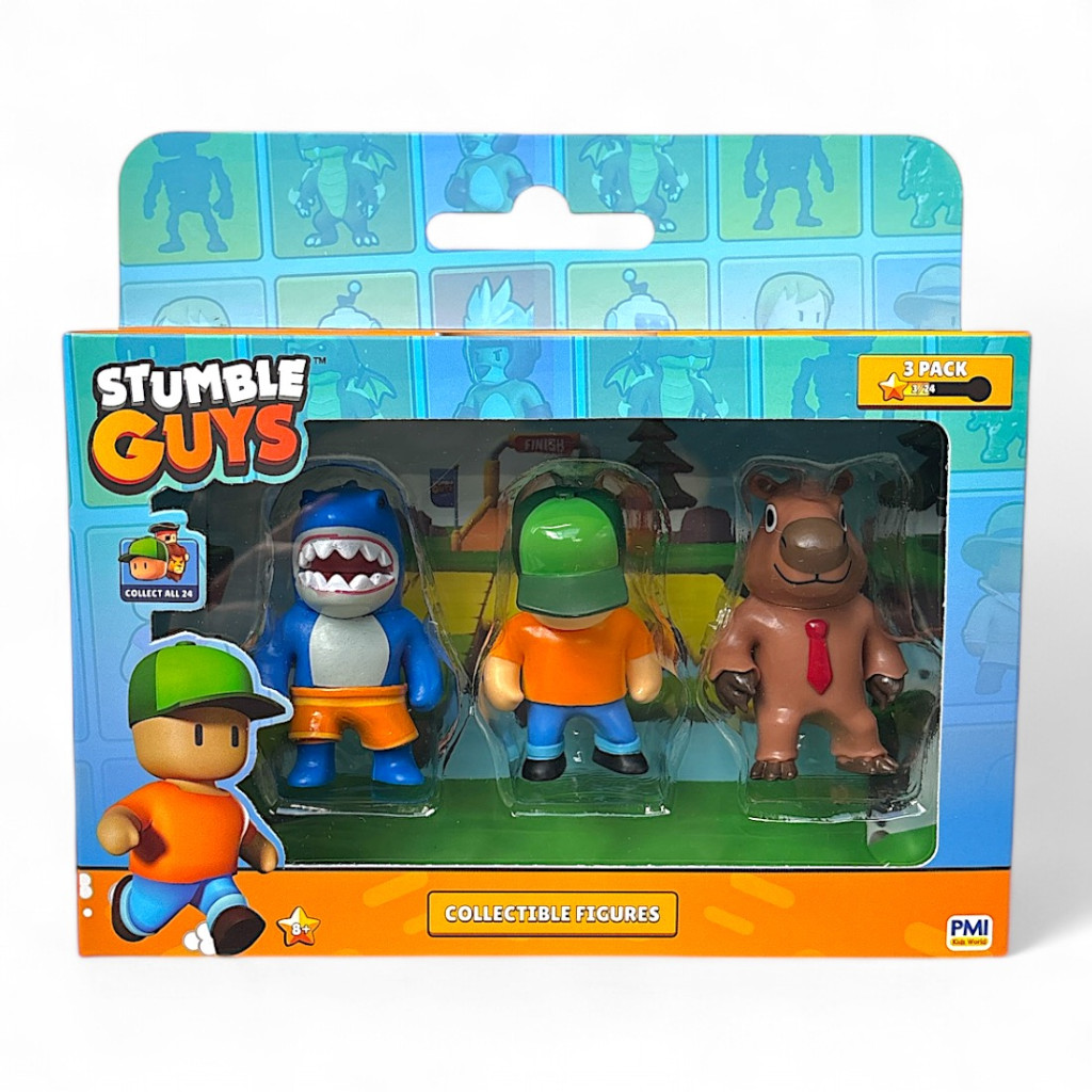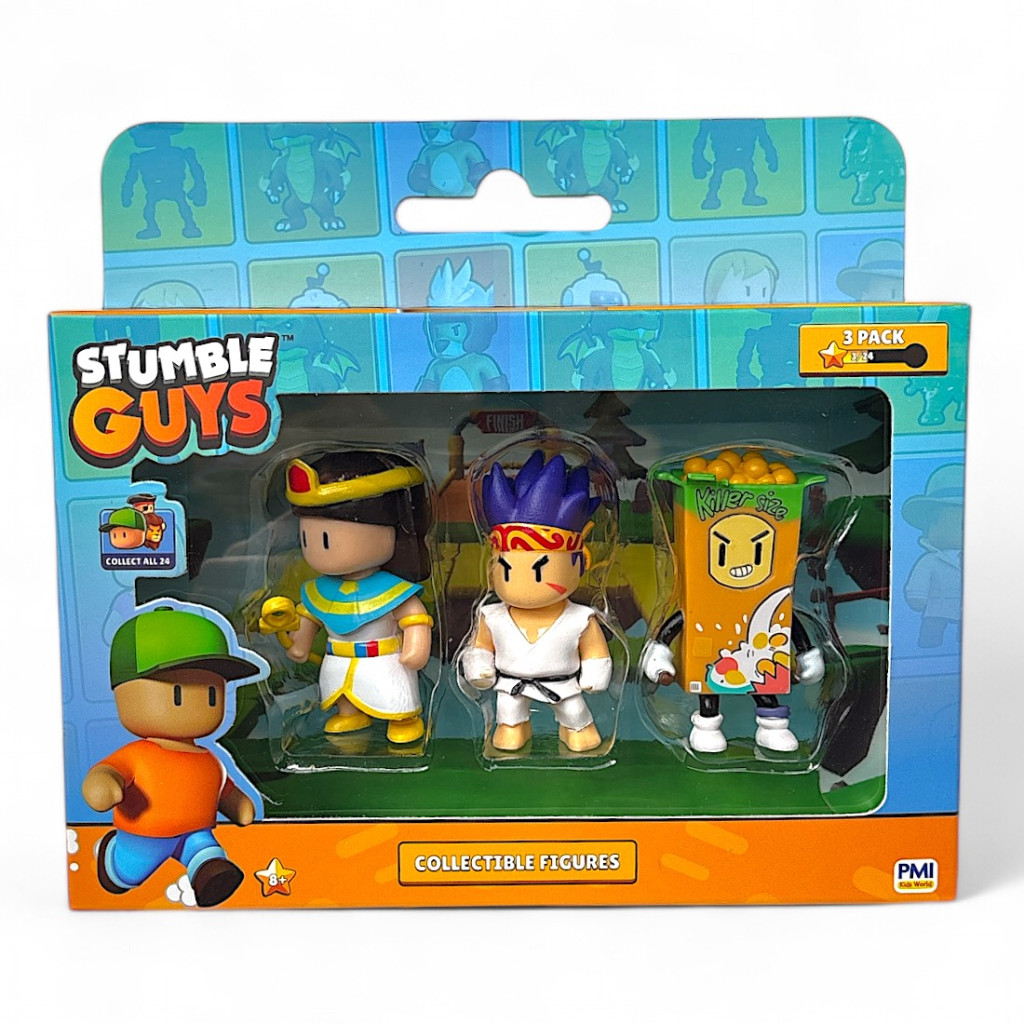 GYŰJTSD ÖSSZE MIND! Merülj el a Stumble Guys káoszos világában exkluzív 3-as csomagunkkal, amely 3 figurát tartalmaz, és összesen 24 hihetetlen karakter vár rád, hogy összegyűjtsd őket! Akár régi rajongó vagy, akár új a játékban, ez a lehetőség, hogy életre keltsd a Stumble Guys akciódús izgalmát.
