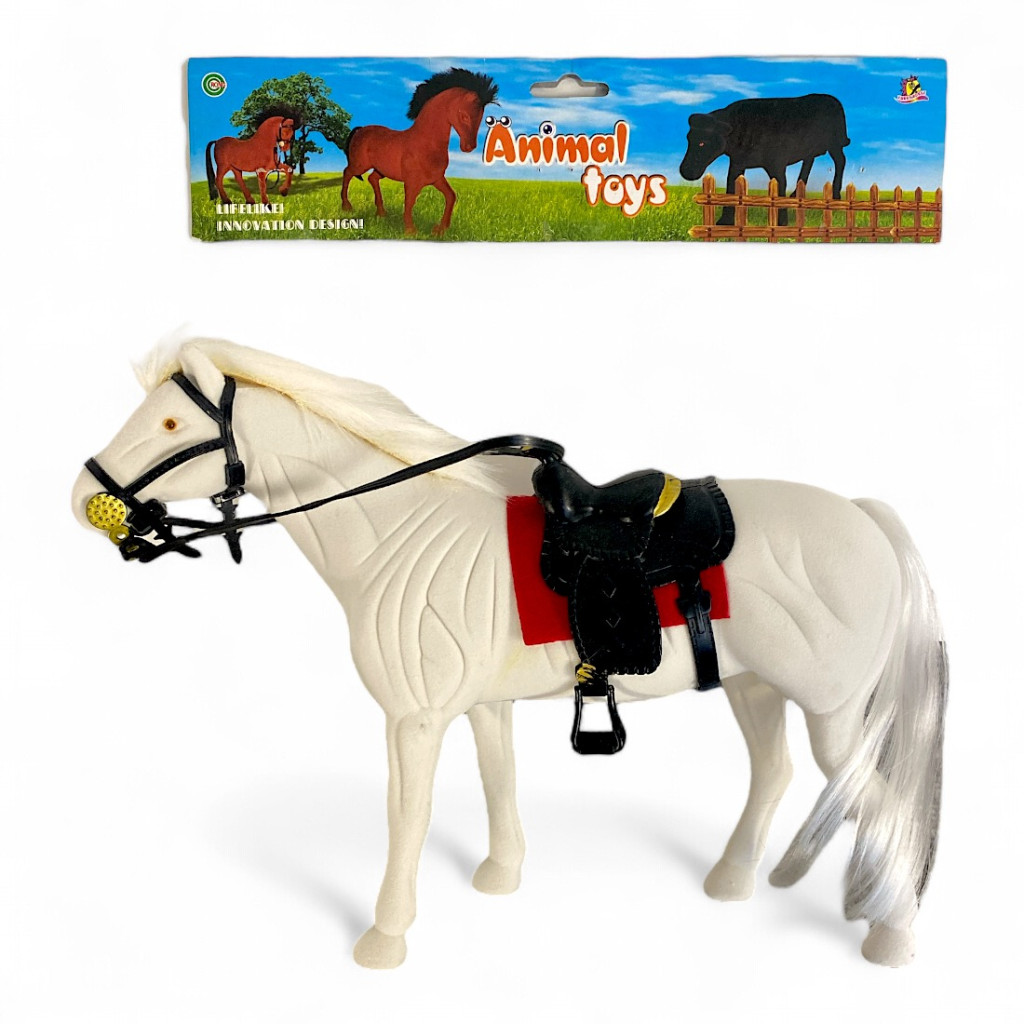 A Super Horse - Flokkolt ló készlet igazi különlegesség a lovakat kedvelő gyermekek számára. A játék kiváló minőségű flokkolt anyagból készült, amely a valósághű megjelenés mellett kellemes tapintást biztosít. A finom részletek és gondosan kialakított kiegészítők, például a nyereg és a kantár, egyedülálló játékélményt nyújtanak, amely a valóságos lovaglás élményét idézi.