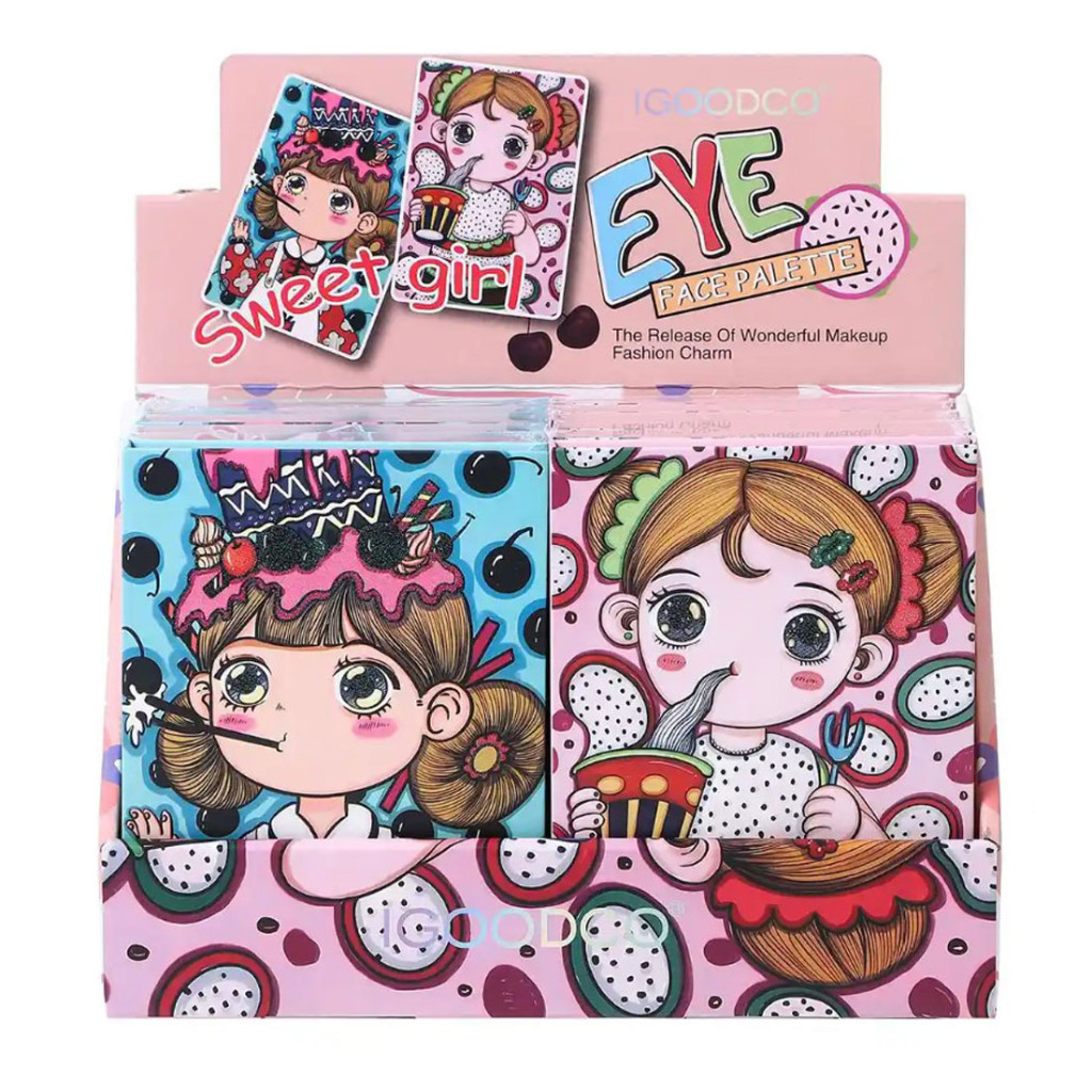 Sweet Girl – Színes SminkpalettaMerülj el a csillogás világában ezzel az elbűvölő, rajzfilmstílusú sminkpalettával, amely nemcsak vidám, de igazán kreatív is! A tündéri borító rejti a meglepetést: 12 vibráló szemhéjpúder, 2 pirosító és 3 szív alakú szájfény vár rád, hogy egyedi stílusod minden nap ragyogjon.