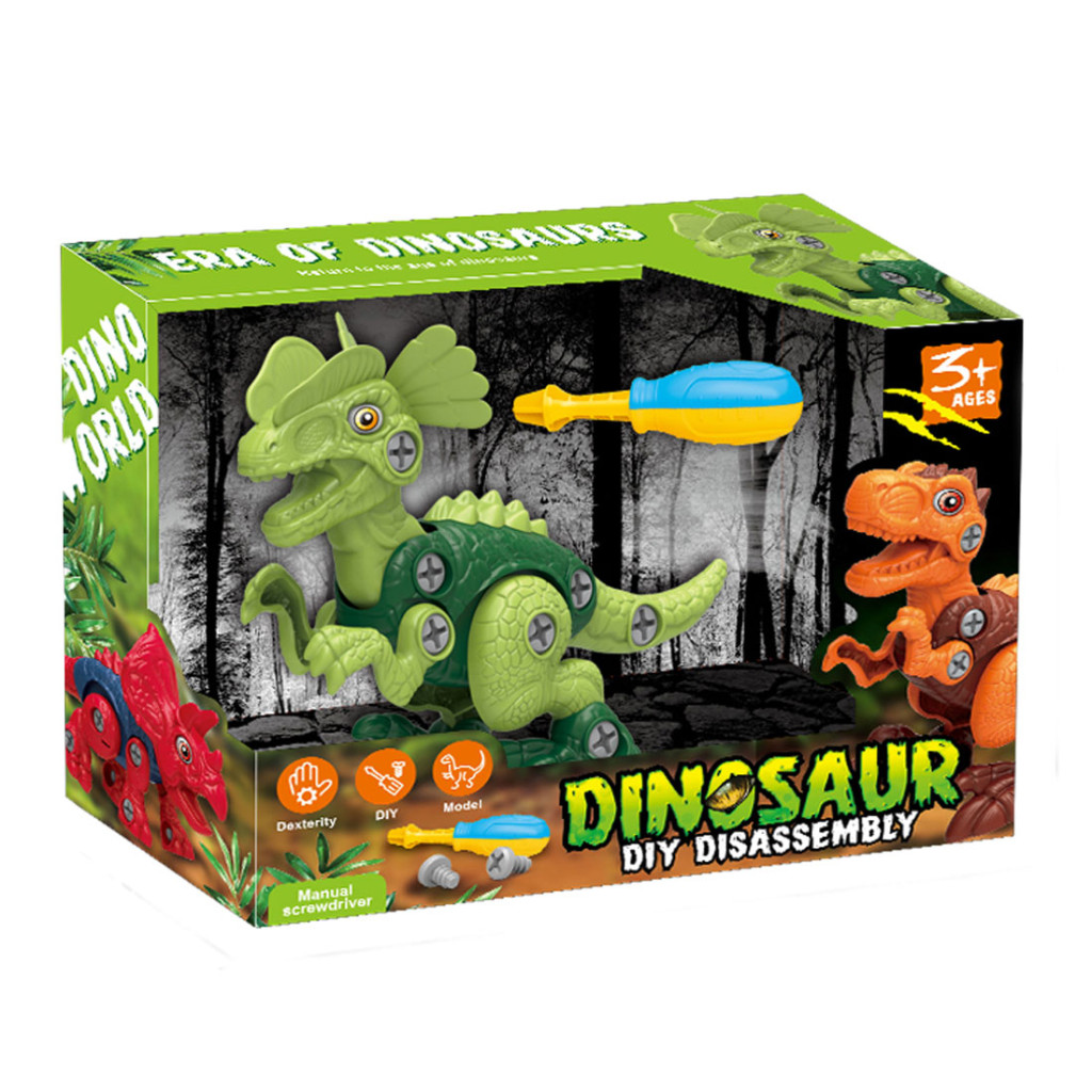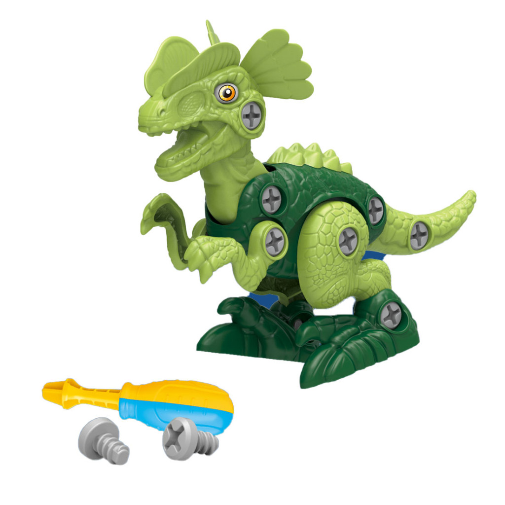 Szerelős dínó készlet, amely fejleszti a gyerekek kreativitását és kézügyességét. Tartalmaz egy csavarhúzót és egy dínófigurát.