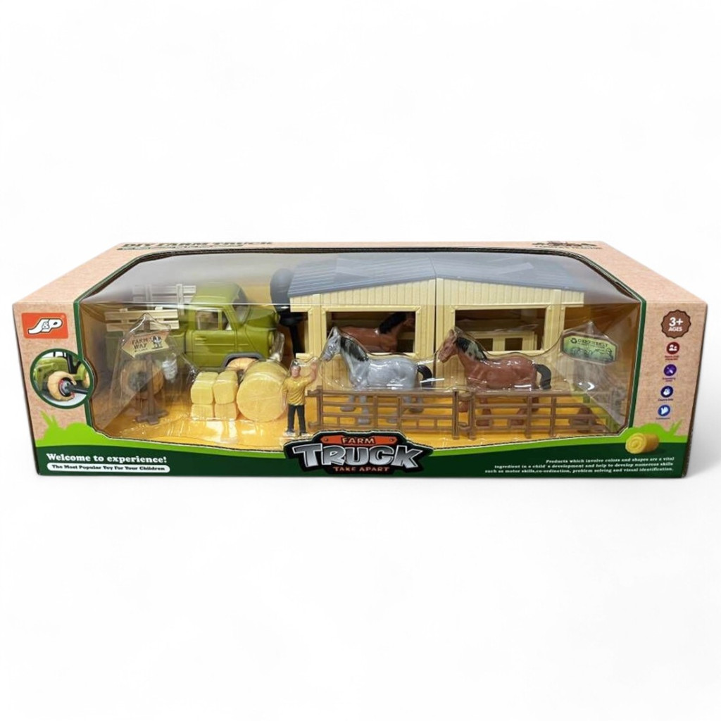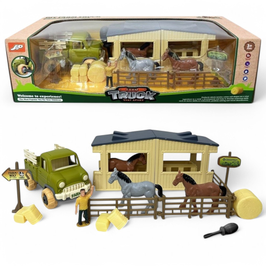 Fedezd fel a vidéki élet varázsát ezzel a szerelős farm készlettel, amely istállót és teherautót is tartalmaz.