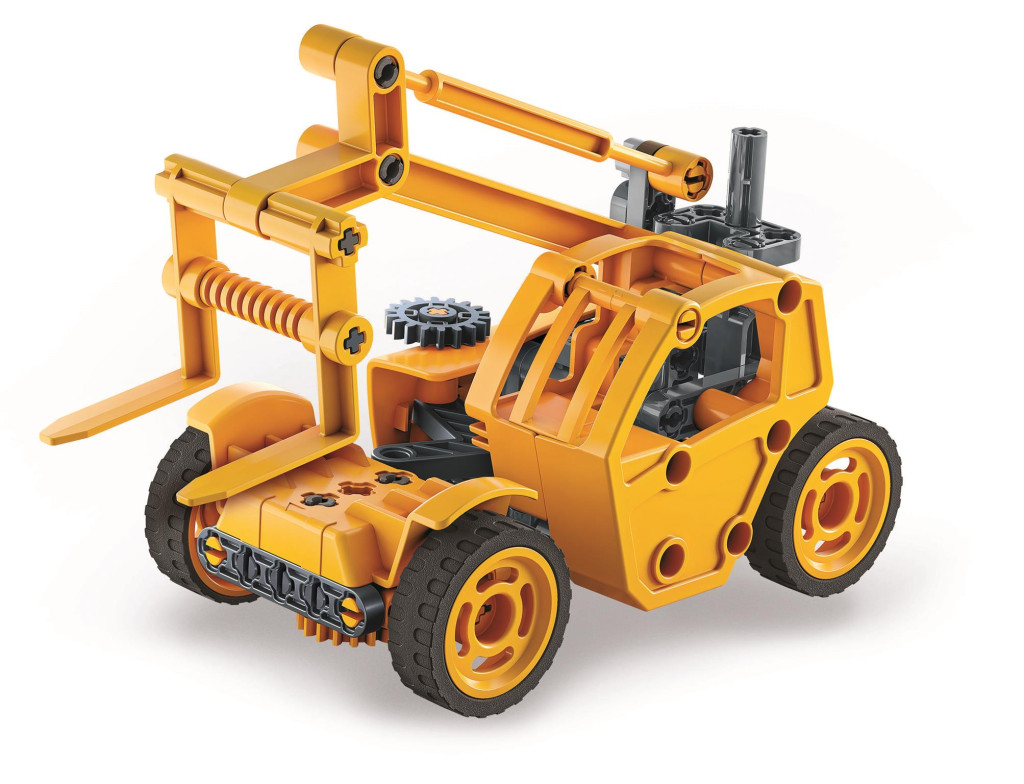 A készlet elemei csavarozással, illesztéssel kerülnek a helyükre, így a gyerekek játék közben fejleszthetik kézügyességüket, finommotorikájukat és logikus gondolkodásukat. A szerelés folyamata türelemre és koncentrációra ösztönöz, miközben a végeredmény egy látványos, saját kezűleg összeállított targonca.