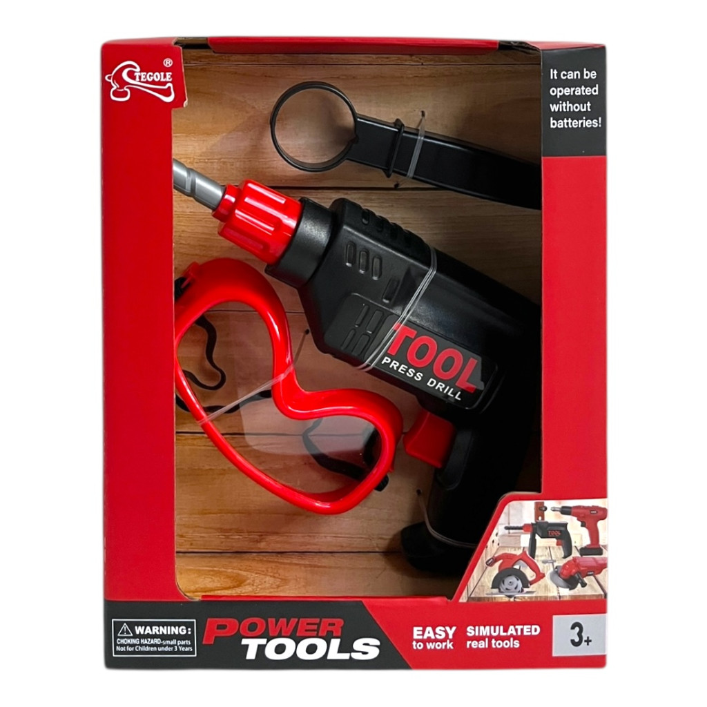 Praktikus szerszámgép készlet játék fúrógéppel és védőszemüveggel, 26x21+ cm-es átlátszó dobbal. Ideális szerepjátékhoz, finommotorika és kreativitás fejlesztéséhez.
