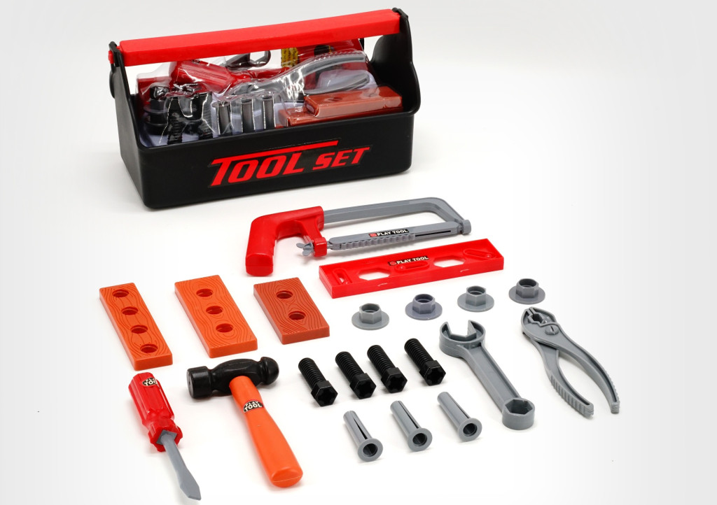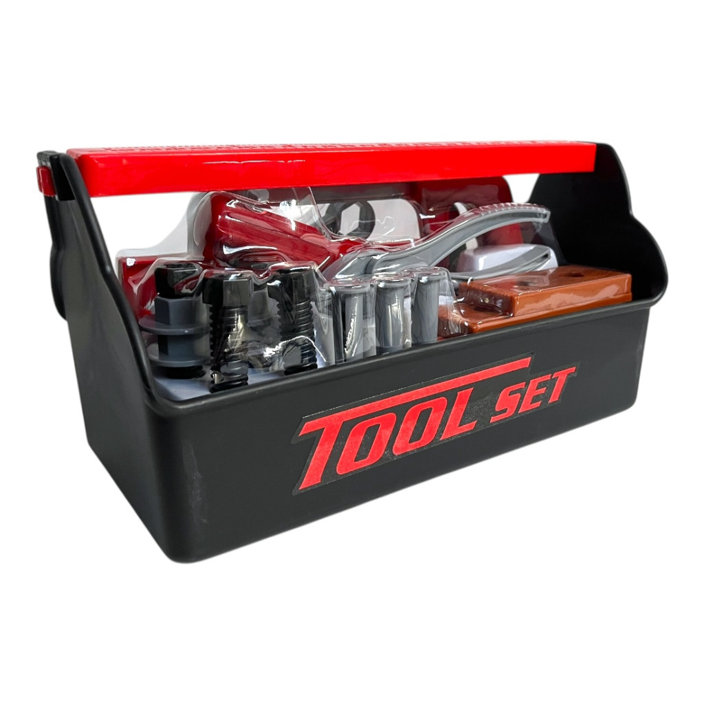 Kompakt, fekete szerszámos láda készlet 30x14 cm-es méretben, mindennapi barkács- és kisebb szerelési munkákhoz. Átlátható, rendezett tárolást biztosít.