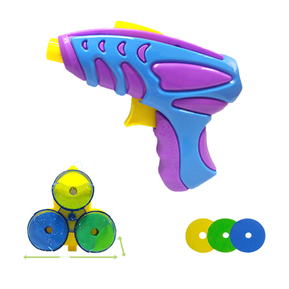 Lépj be az intergalaktikus csaták világába ezzel a futurisztikus korong kilövő pisztollyal! A könnyen kezelhető és izgalmas játék két színben érhető el – kék és zöld, így mindenki megtalálhatja a kedvencét. A pisztoly puha műanyag korongokat lő ki, amelyek célba találáskor látványos hatást keltenek.