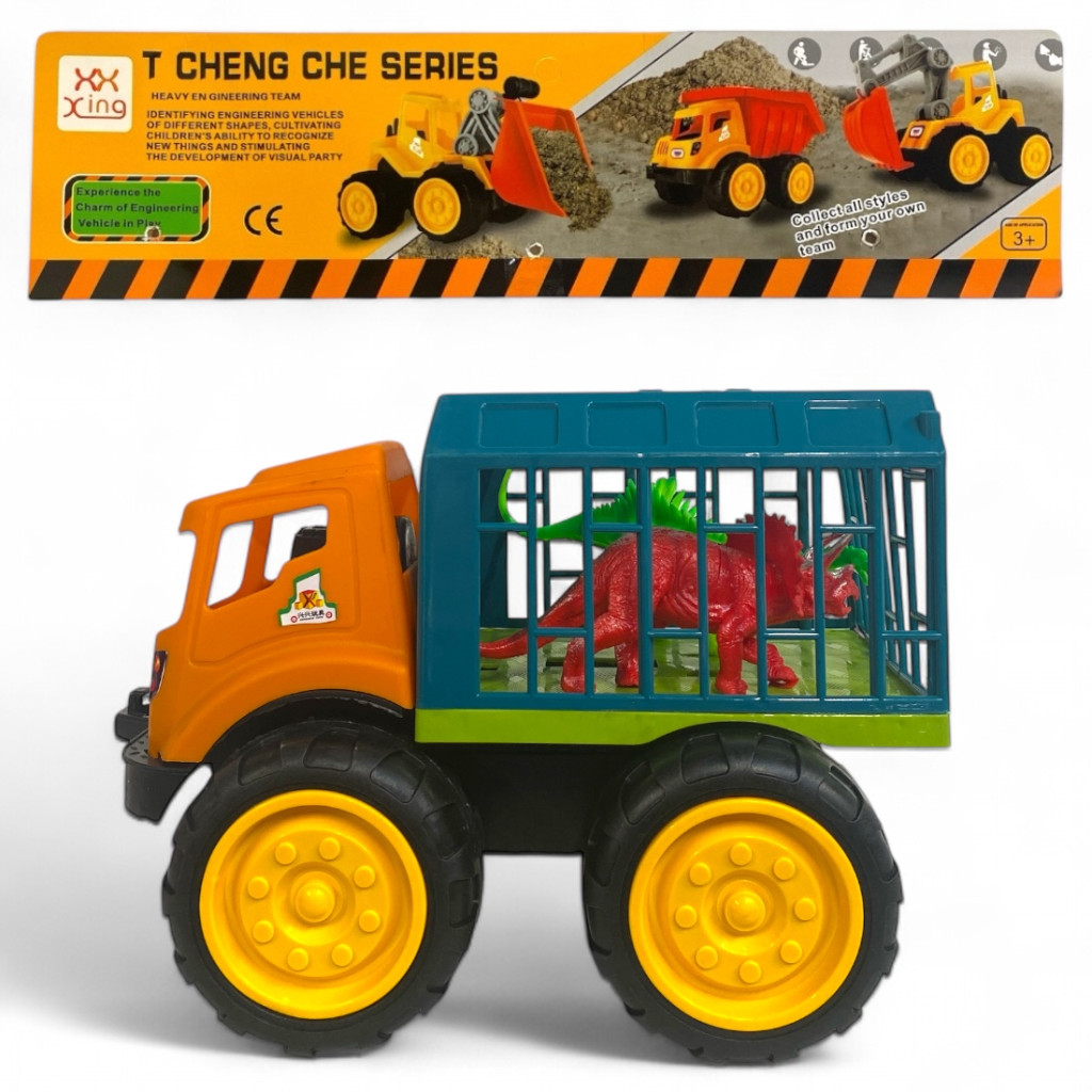 Ez a látványos dínószállító teherautó tökéletes játék a kis dinoszaurusz rajongók számára. A masszív jármű hátulján ketreces szállítórész található, amelyben két különböző dinoszaurusz figura utazik.