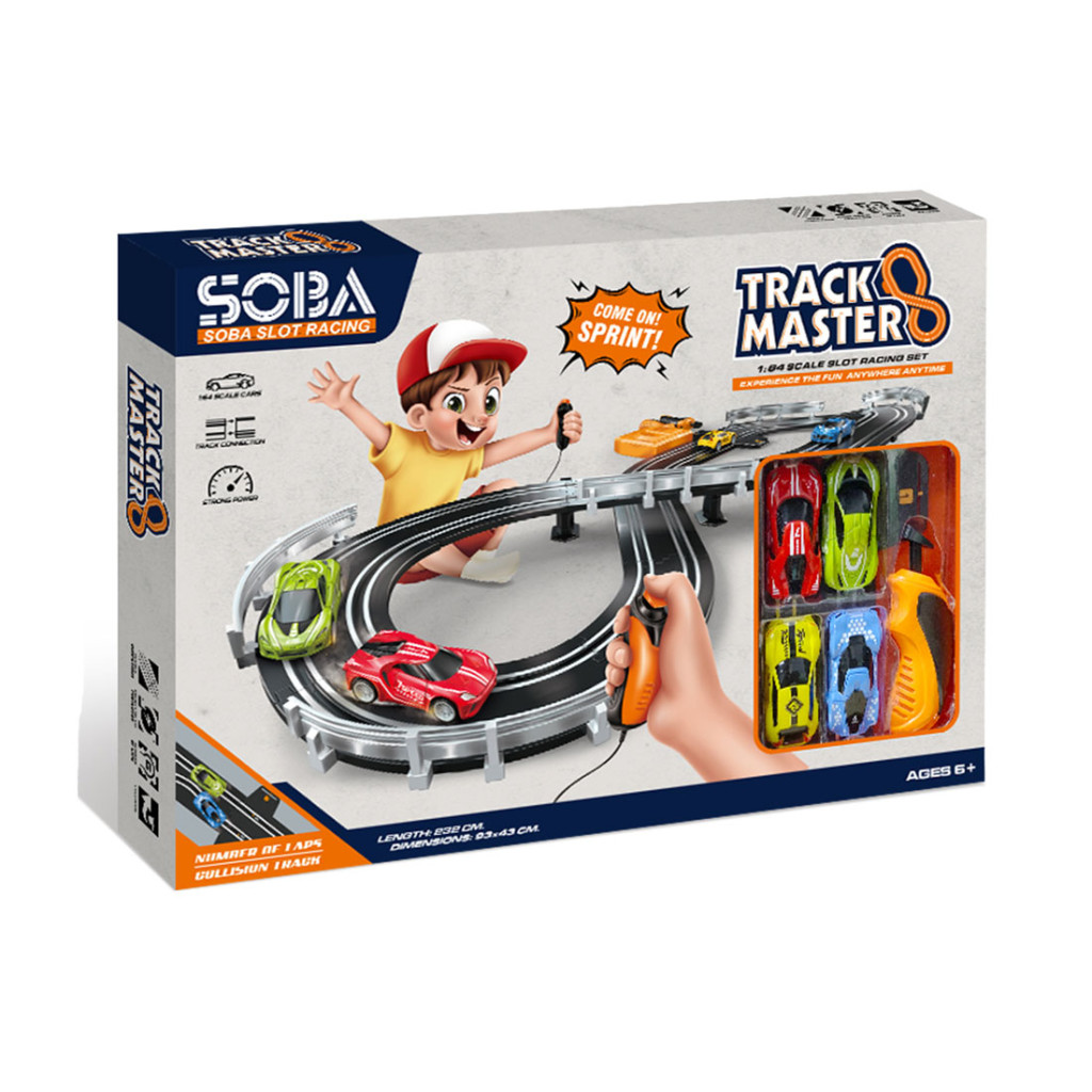 Száguldásra fel! A Track Master autópálya készlet 4 versenyautóval és 232 cm hosszú pályával várja a kis pilótákat. Könnyen összeállítható, gyors és látványos versenyélményt nyújt 6 éves kortól.