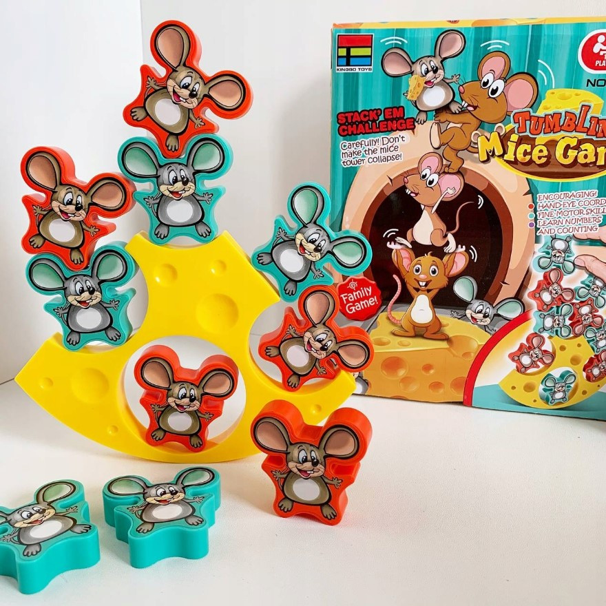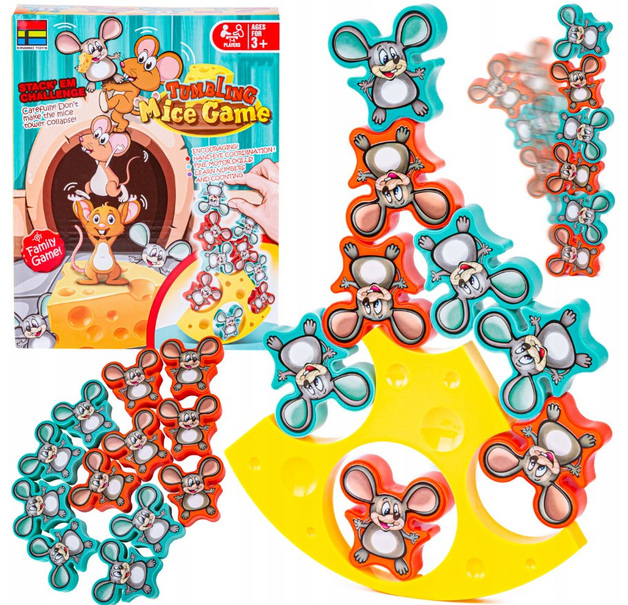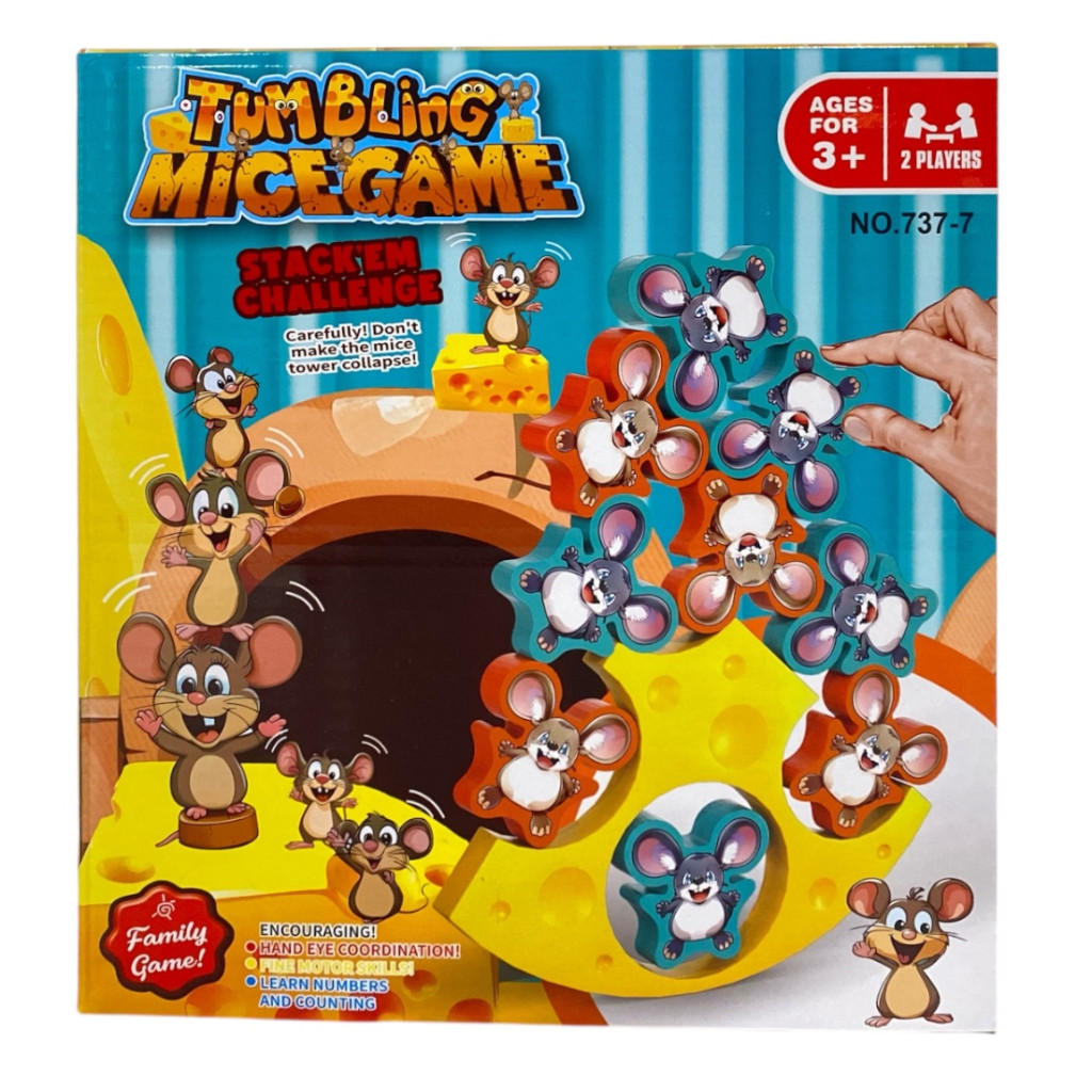 A Tumbling Mice Game egy vidám és izgalmas ügyességi társasjáték, ahol a gyerekeknek az a feladatuk, hogy minél több egeret rakjanak egymásra anélkül, hogy a torony összeomlana. A játék közben fejlődik a kézügyesség, a szem-kéz koordináció és a koncentráció, miközben rengeteg nevetést garantál az egész családnak.