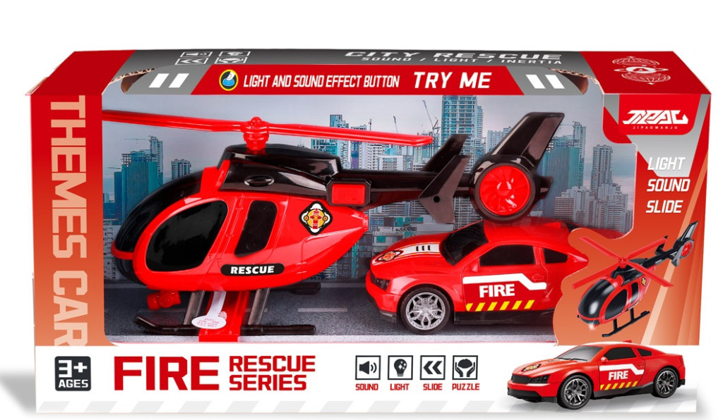 Fedezze fel a tűzoltóság izgalmas világát ezzel a különleges járműkészlettel, amely magában foglal egy helikoptert és egy autót. Mindkét jármű elektromos funkciókkal van felszerelve, hogy hang- és fényhatásokkal növeljék a játékélményt. A lendkerekes mechanizmus lehetővé teszi, hogy a járművek gyorsan és könnyedén induljanak útjukra, ami még izgalmasabbá teszi a játékot.