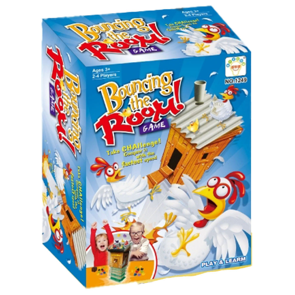 A játék tartalmaz:1 db tyúkól36 db csirke figura1 db dobókockaA játék célja, hogy minél a játékos előtt lévő összes csirke figurát a tyúkólba tegye, mielőtt onnankiugrik az összes csirke.ElőkészületA 36 db figurát a játékosok között egyenlően kell szétosztani, mindhárom színből azonosmennyiséget kell kapniuk.Játék menete:A legfiatalabb játékos óvatosan lenyomja a tyúkól tetejét, ezzel elindítva a játékot. Majd ő dobelőször a dobókockával. A dobott színnek megfelelő 1 darab figurát kell a tyúkólba helyezni. Egészenaddig kell dobnia és a megfelelő színű figurát a tyúkólba helyeznie, amíg nem dob olyan színűt,amilyen már nincsen neki. Ekkor a tőle balra lévő játékos jön.Ez egészen addig folytatódik, amíg az egyik játékosnál el nem fogynak a figurák, vagy ki nem ugranaka tyúkólból. Ez utóbbi esetben az éppen aktuális játékosnak össze kell szednie a kiugrott figurákat ésa kupacához tennie.Az nyer, aki előtt nem marad egy figura sem.A termék csomagolási mérete: 28x20 cm dobozban.